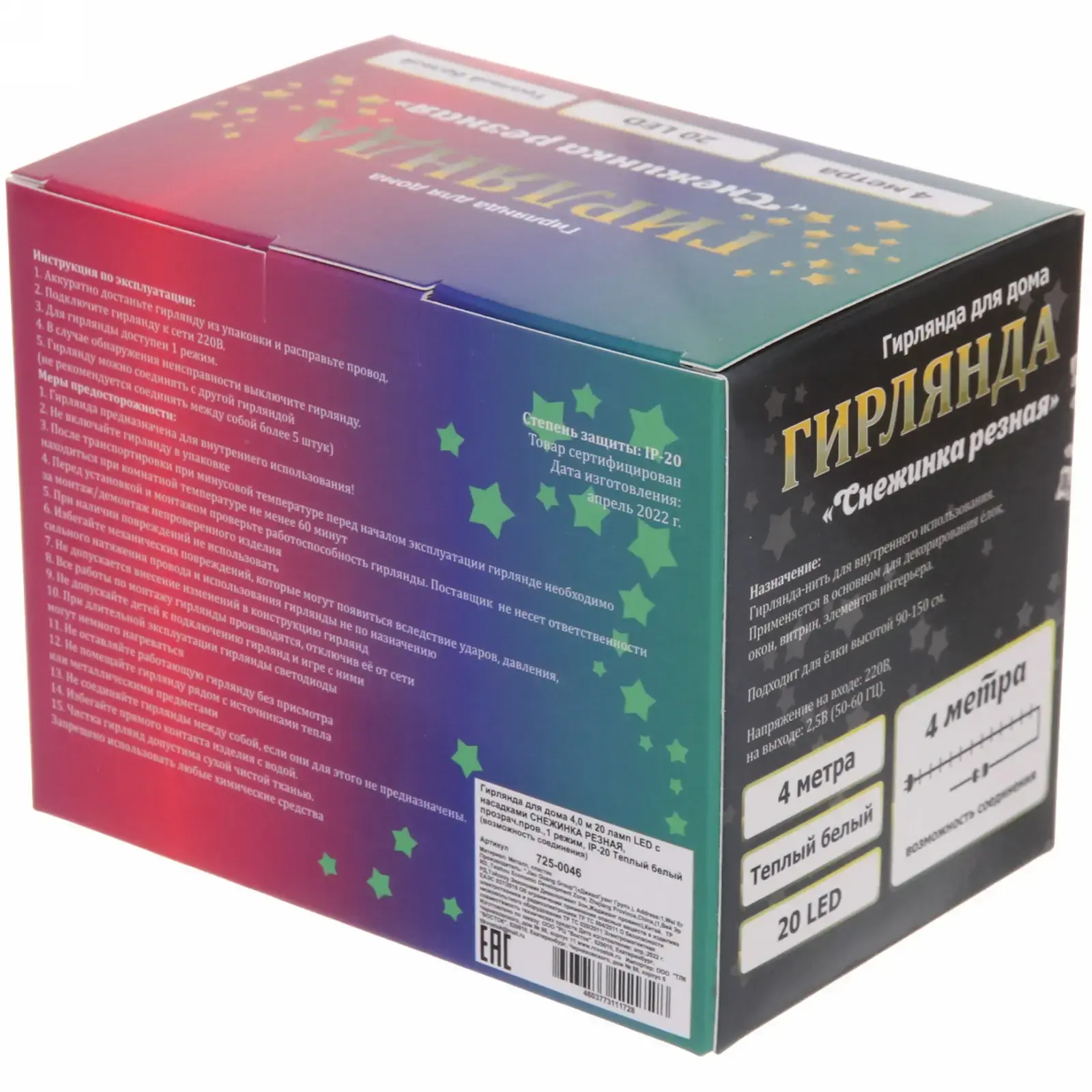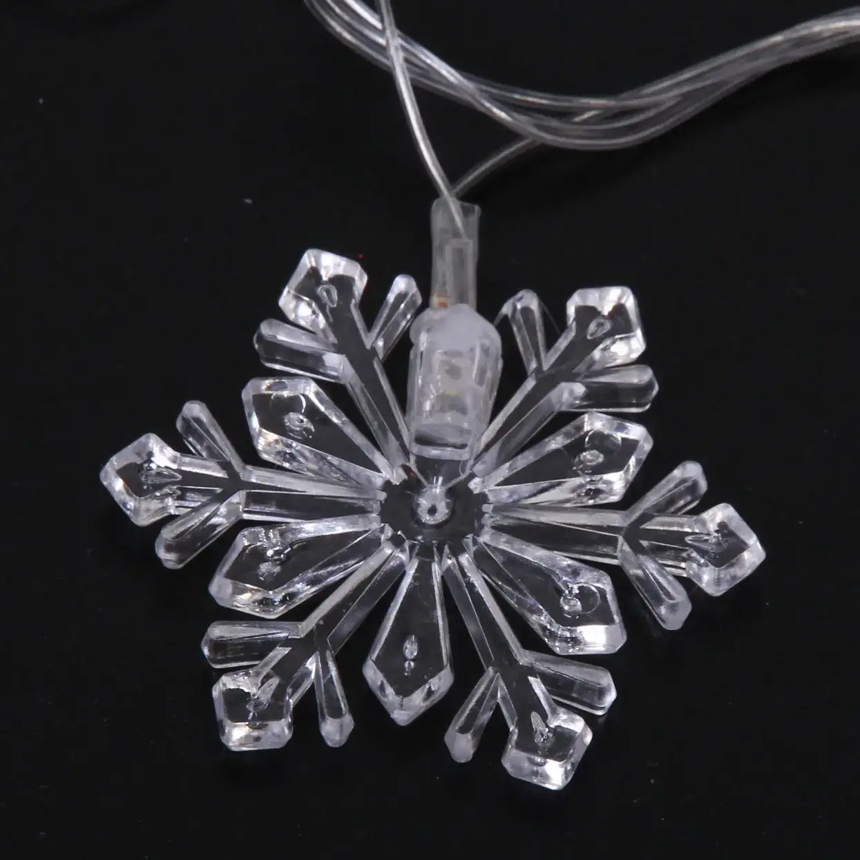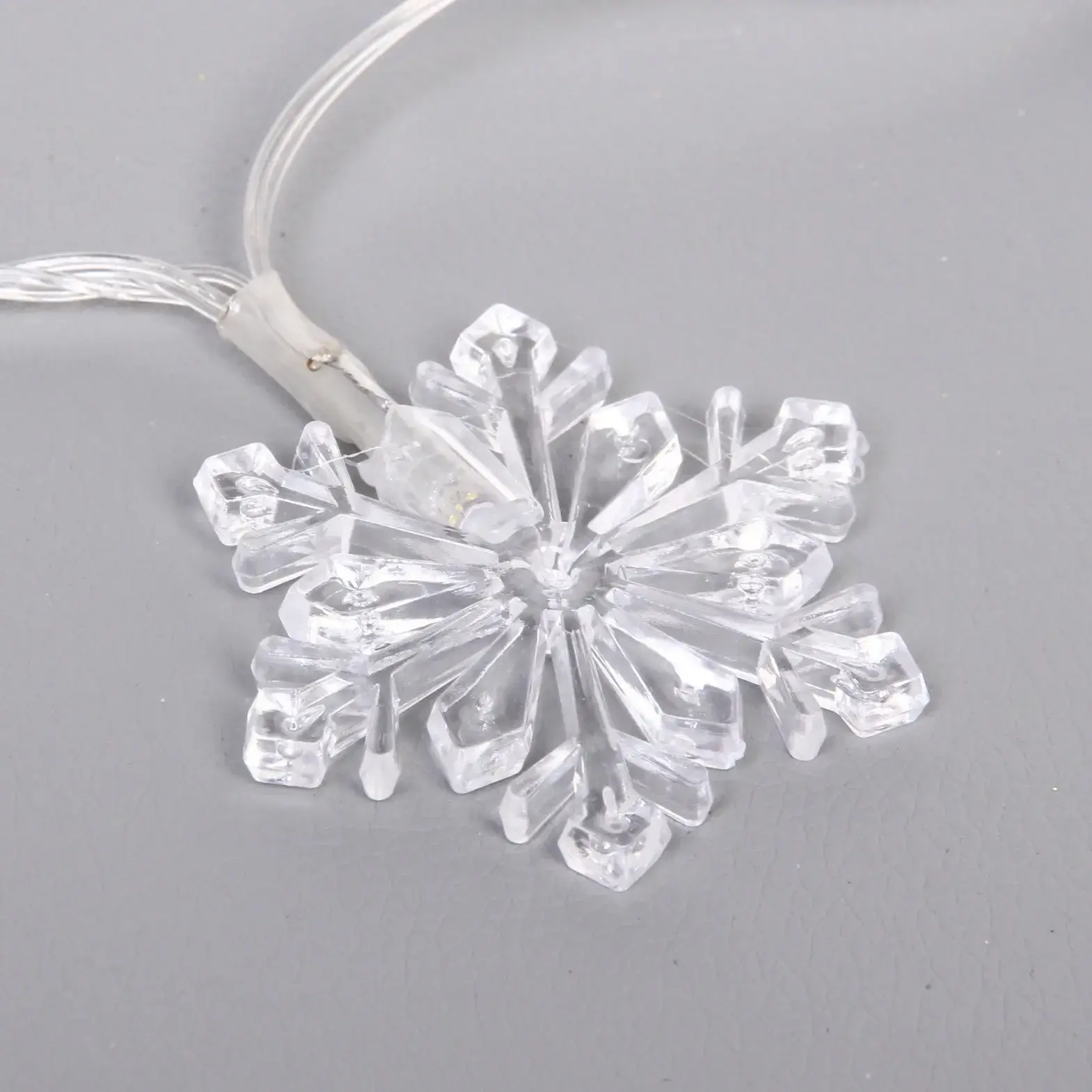 Компактные размеры снежинок (3-4 см) и равномерное расстояние между элементами создают гармоничную композицию. Сертифицированный товар соответствует требованиям электробезопасности — идеальный выбор для семей с детьми и домашними животными.