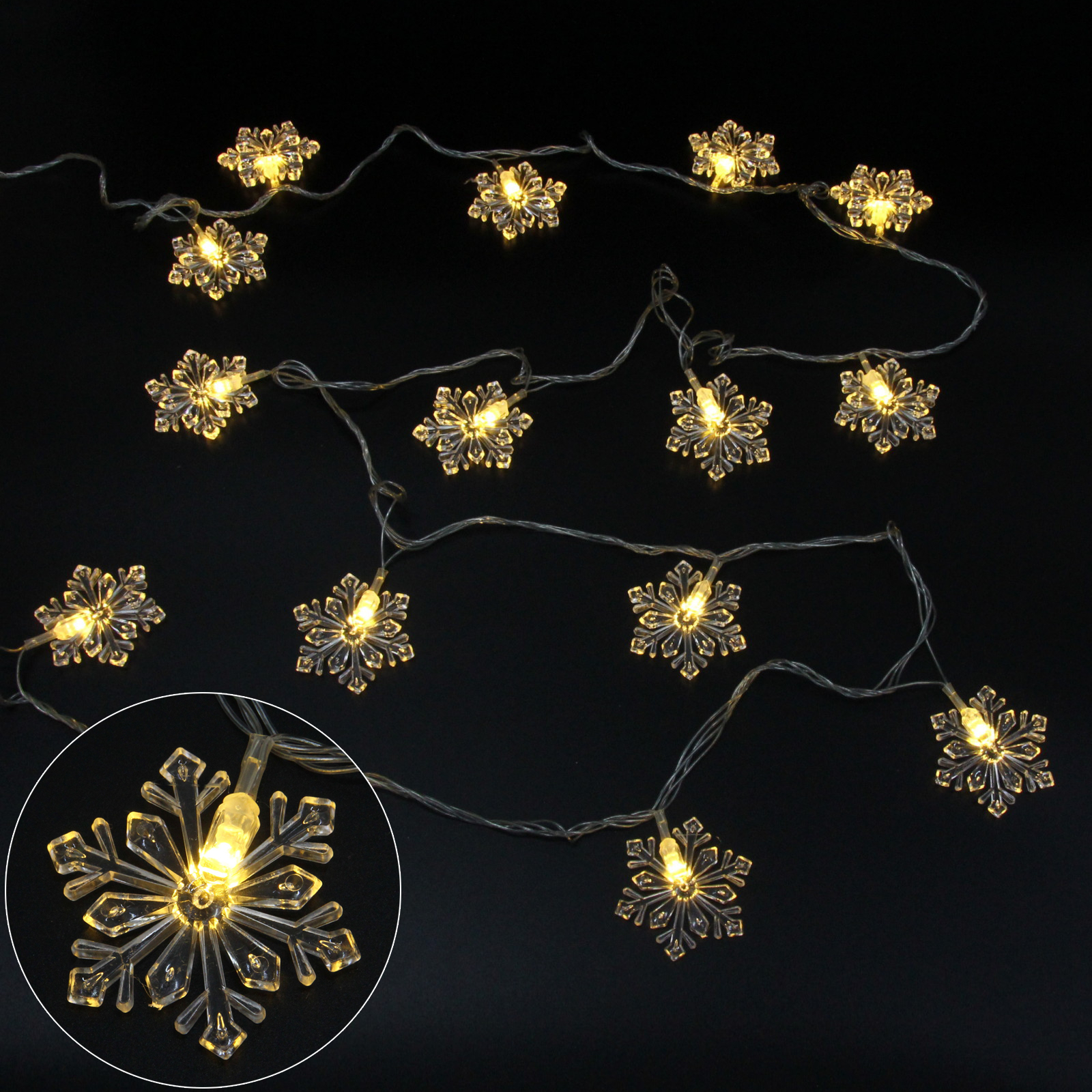 Гирлянда для дома 4,0 м 20 ламп LED с насадками СНЕЖИНКА РЕЗНАЯ, прозрач.пров., 1 реж.,IP-20 Теплый белый (возможность соединения)