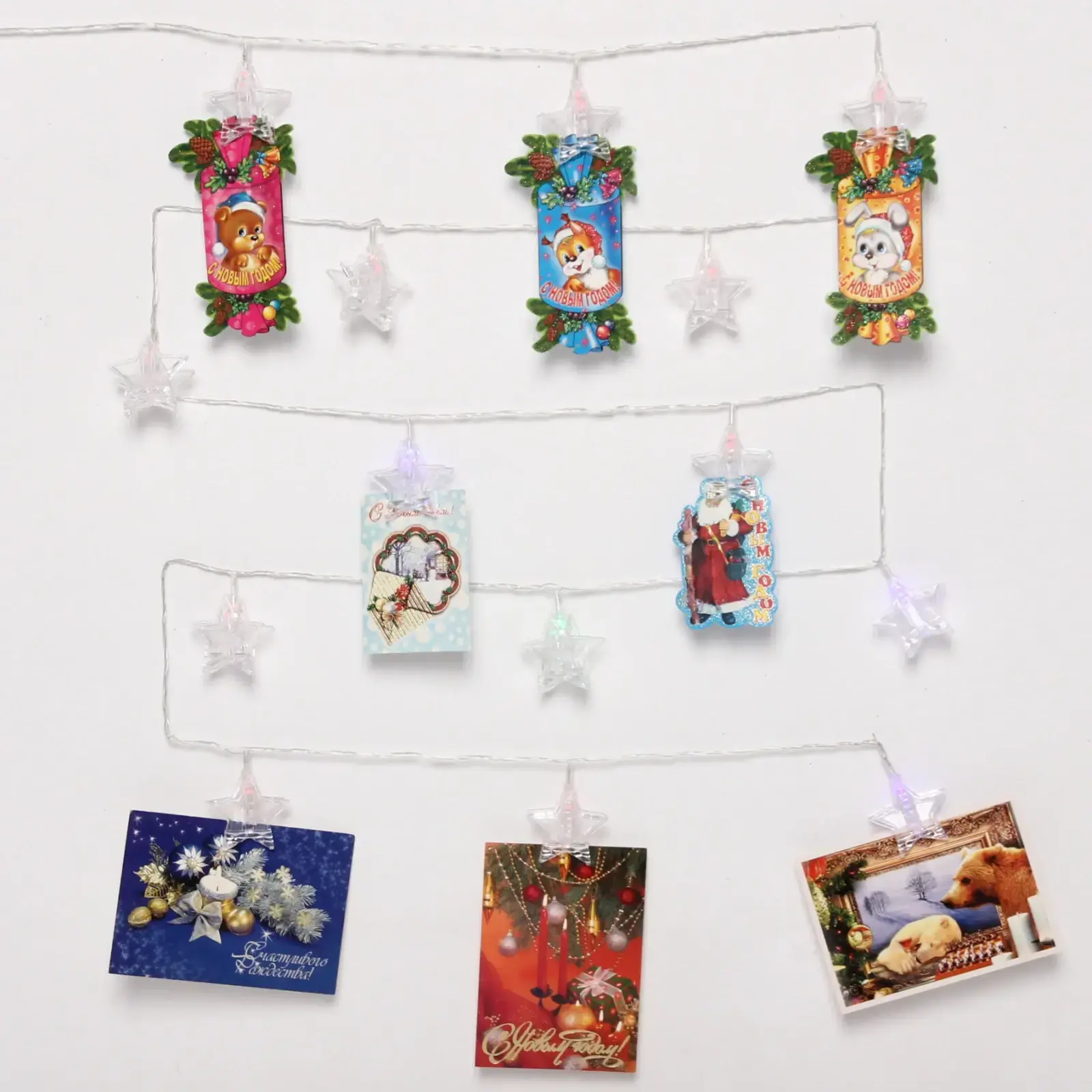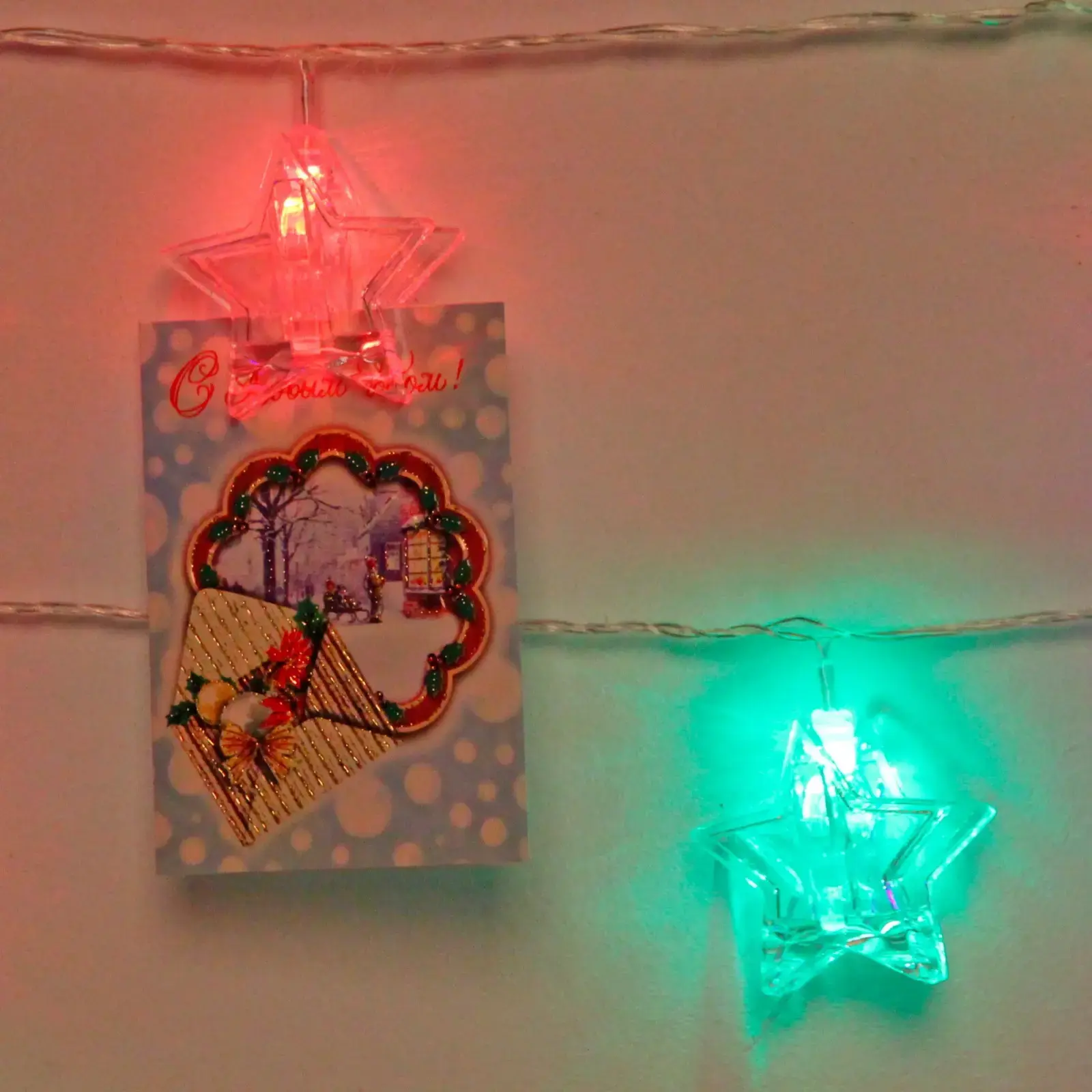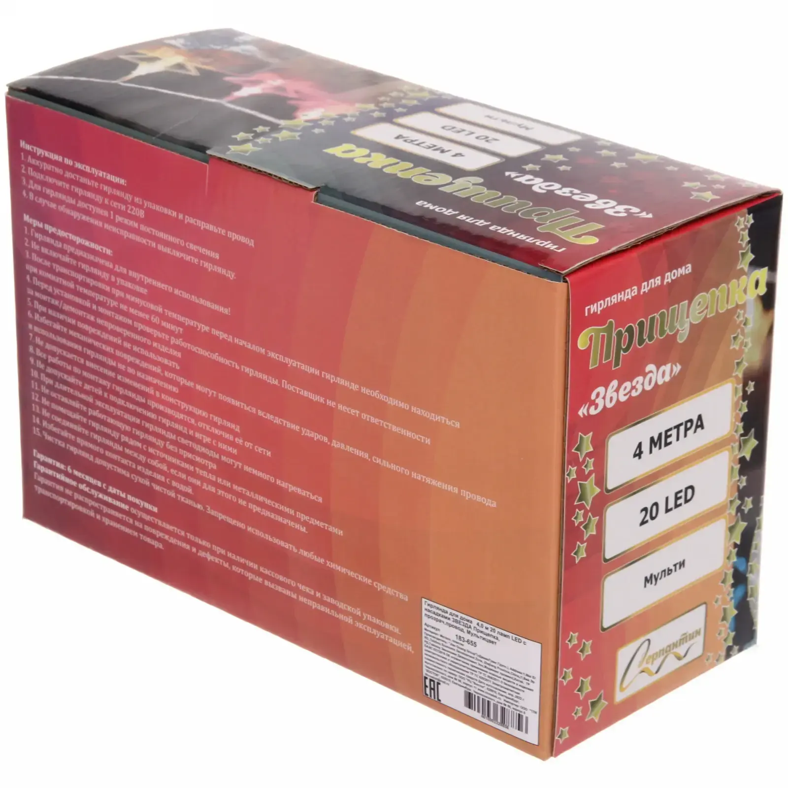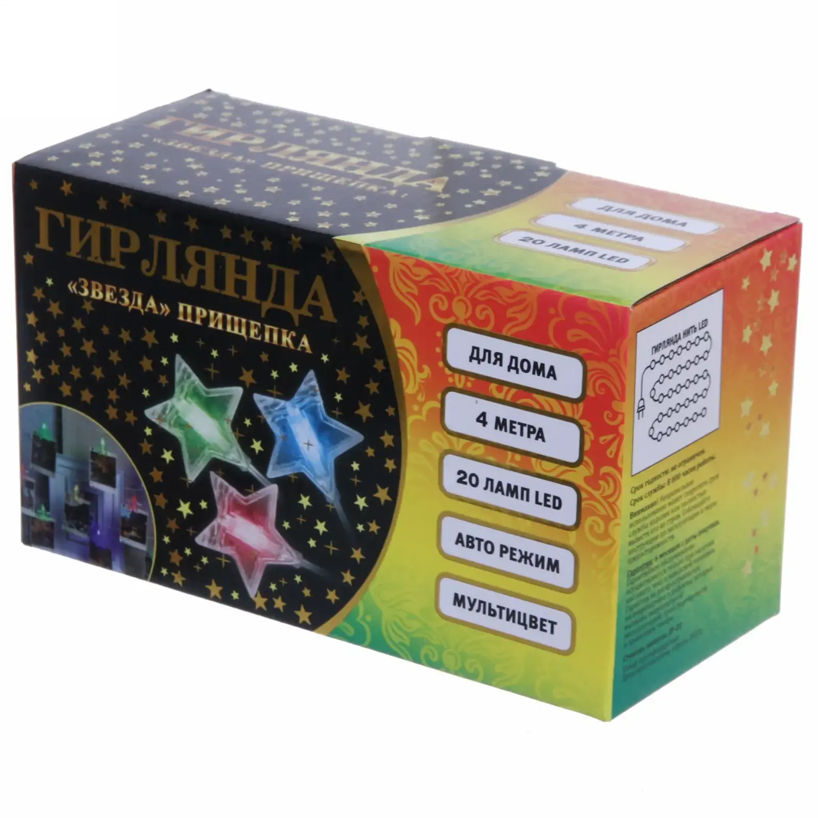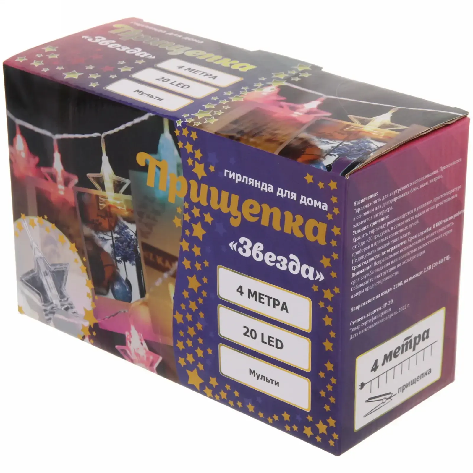 Гирлянда для дома 4,0 м 20 ламп LED с насадками ЗВЕЗДА Прищепка, прозрач.провод, Мультицвет