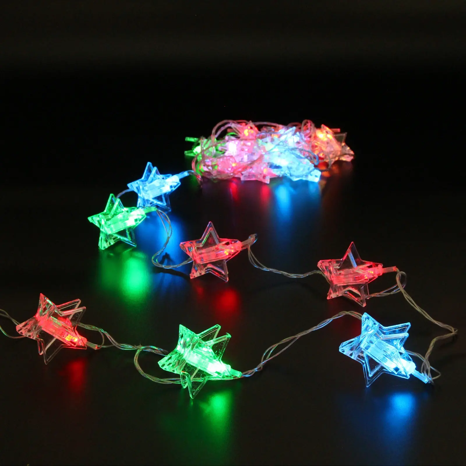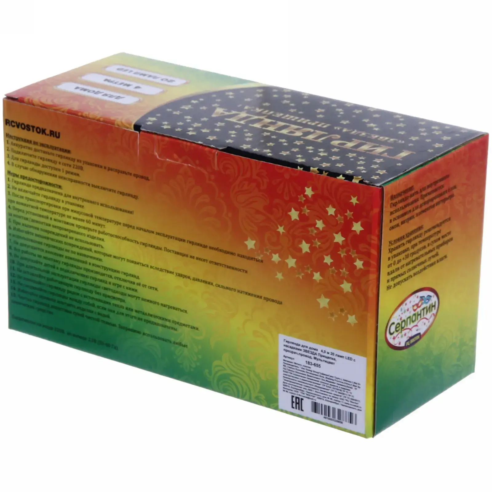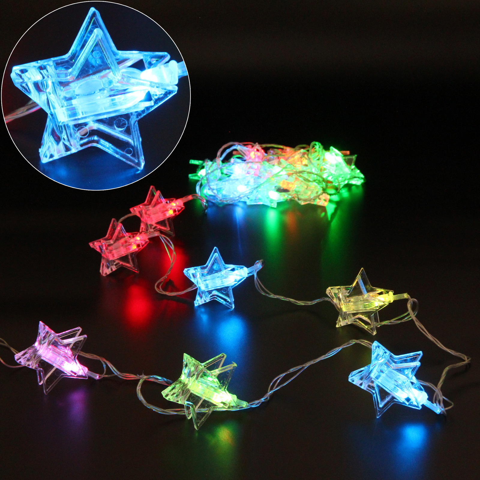 Яркая светодиодная гирлянда с эффектом мерцания превратит ваш дом в зимнюю сказку. 20 разноцветных звёзд на гибком проводе создают объёмную подсветку для интерьеров и новогодних ёлок.