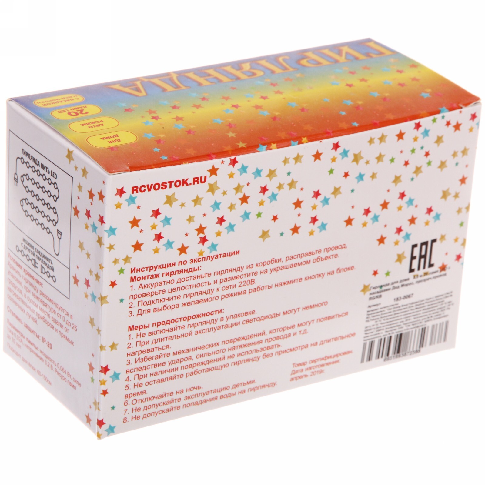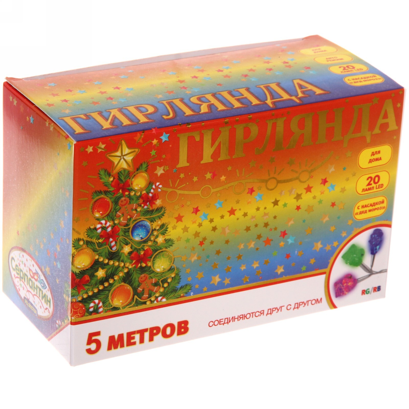 Гирлянда для дома 5,0 м 20 ламп LED с насадками ДЕД МОРОЗ, прозрач.пров., авторежим.,IP-20 RG/RB (возможность соединения)