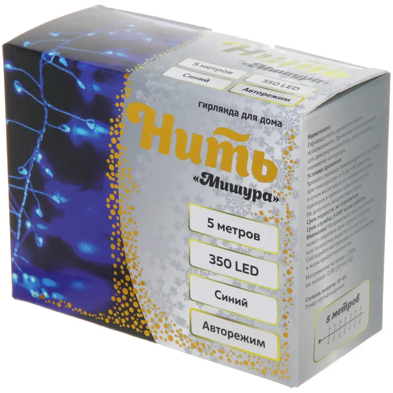 Создайте уютную атмосферу с гирляндой LED «Мишура» длиной 5,0 метров. Эта гирлянда с 350 яркими синими лампами станет отличным дополнением к вашему интерьеру, добавляя нотки волшебства и праздника. Благодаря высокому качеству и надежности, она идеально подходит для использования как в помещении, так и на улице.