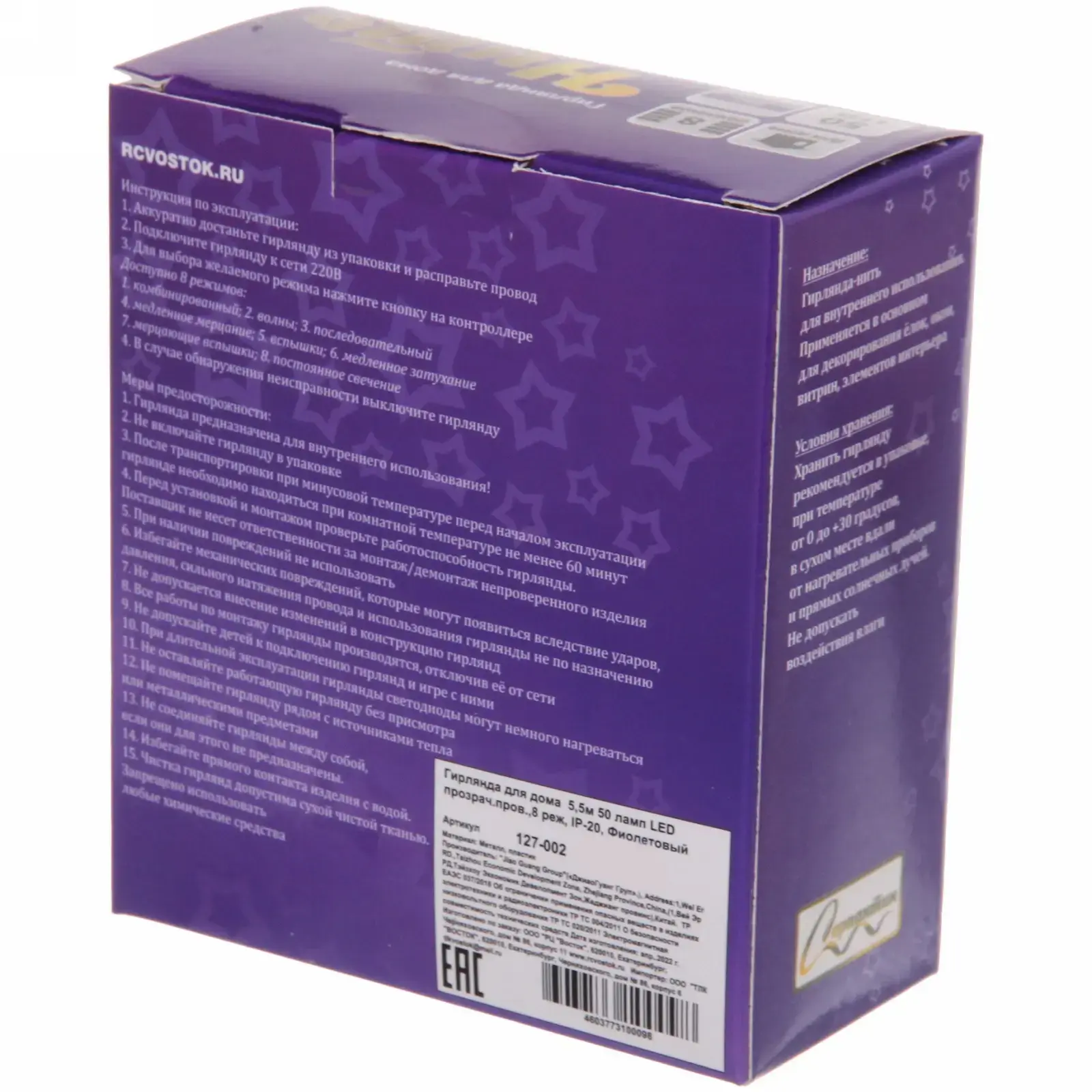 Гирлянда длиной 5,5 метра с 50 яркими лампами фиолетового цвета — это идеальное решение для создания уютного и сказочного настроения в вашем доме. Благодаря 8 режимам работы, вы сможете легко менять освещение в зависимости от настроения и события. Эта гирлянда станет отличным дополнением к новогоднему декору, а также подойдет для украшения вечеринок, свадеб и других торжеств.