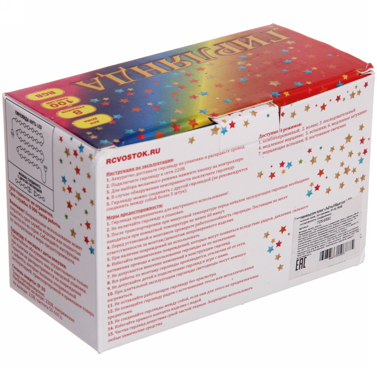 Гирлянда изготовлена из качественных материалов: черный провод обеспечивает надежность и долговечность, а светодиоды выполнены из прочного пластика. Длина гирлянды составляет 9,5 метров, а количество ламп — 100, что позволяет равномерно распределить свет по всей длине. Не упустите возможность сделать ваш дом более уютным и красивым с этой замечательной гирляндой!