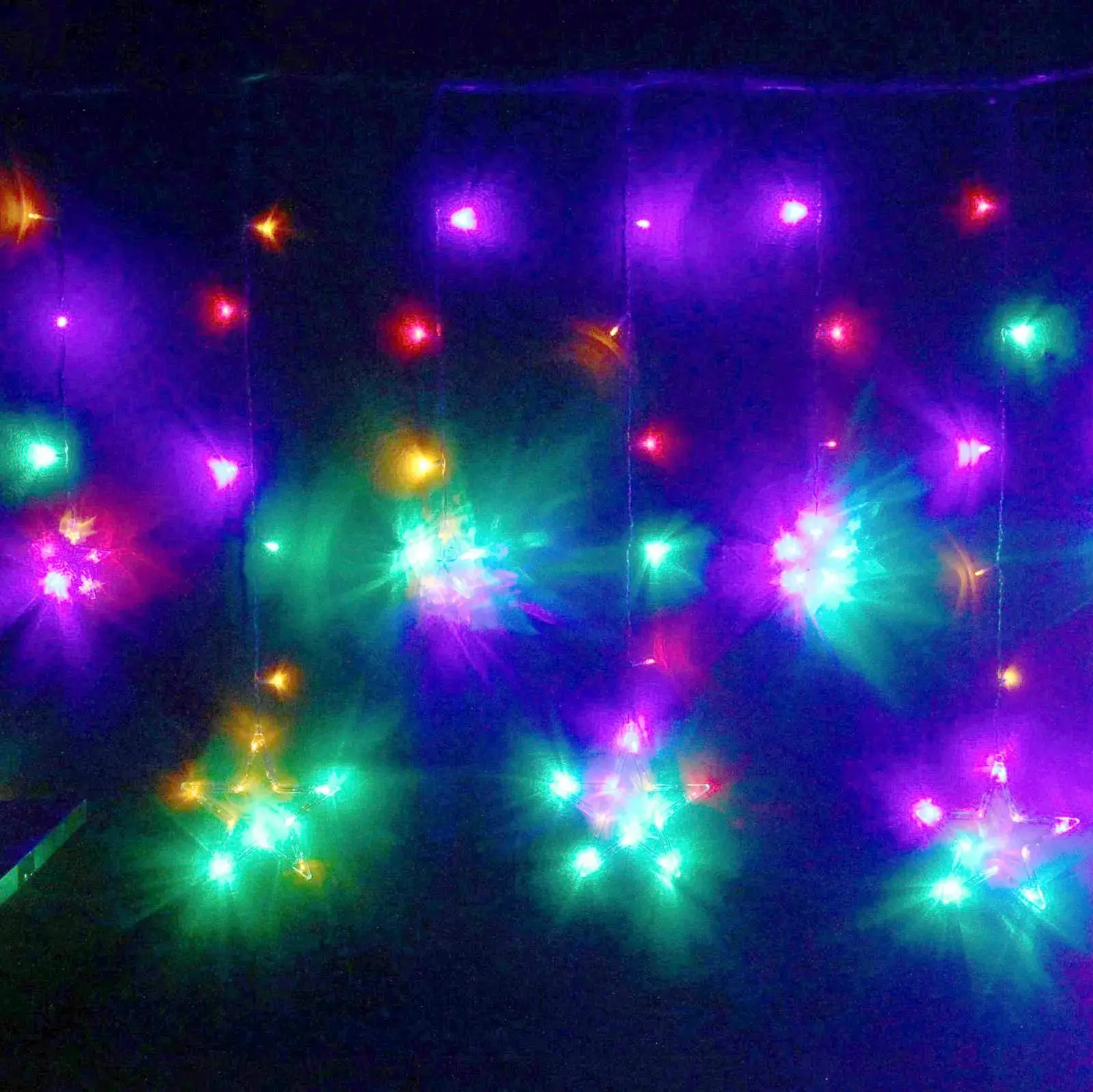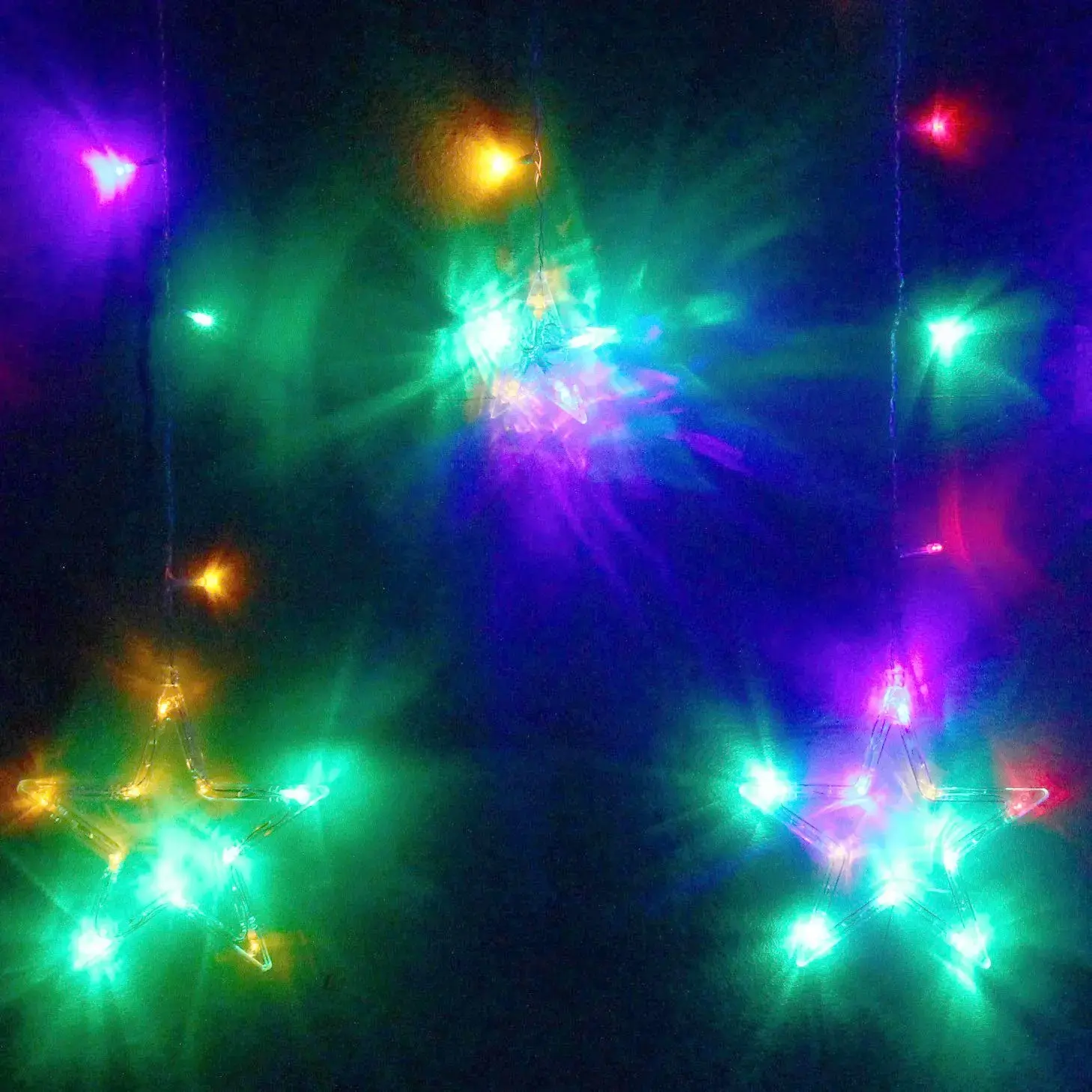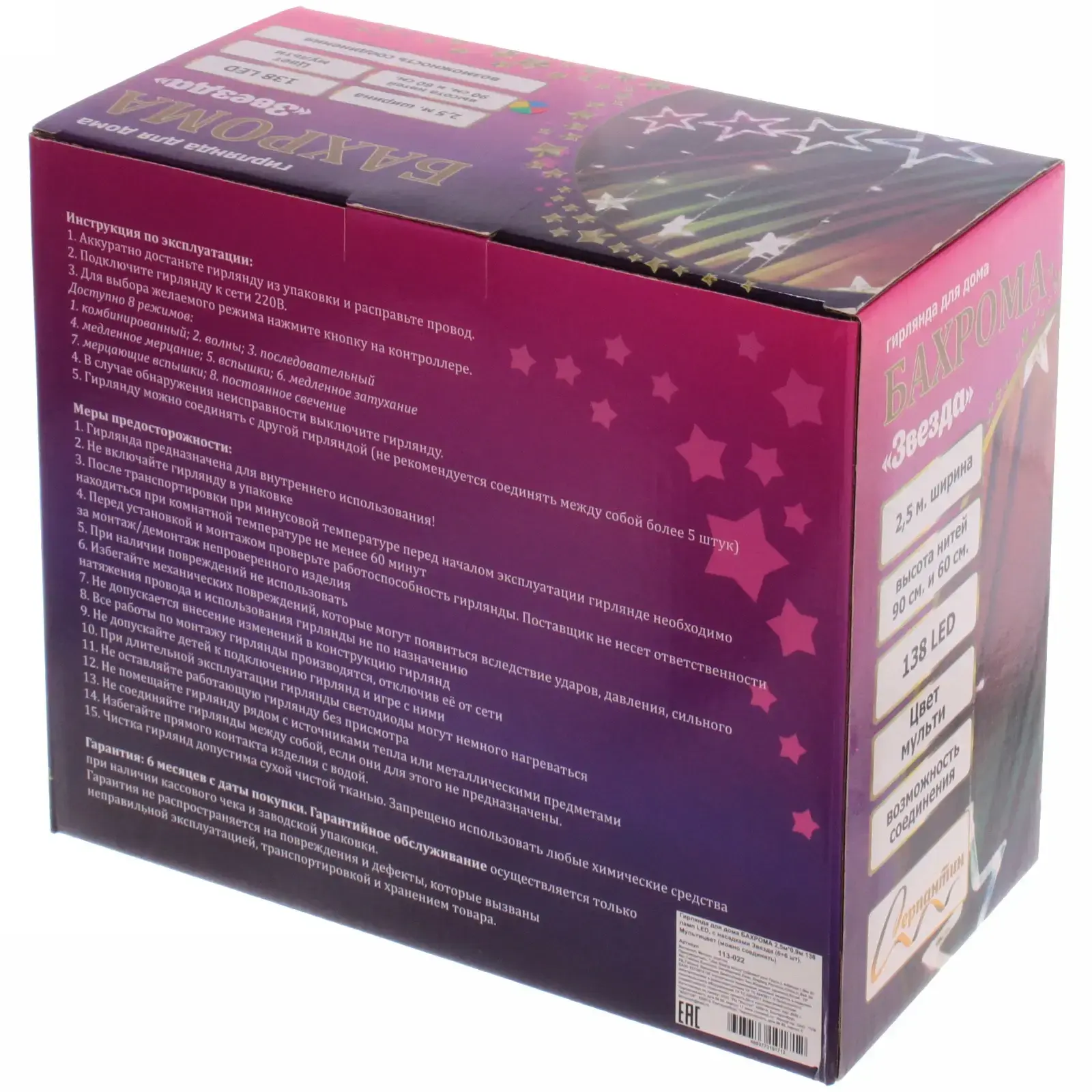 Гирлянда для дома БАХРОМА 2,5м*0,9м 120 ламп LED, с насадками Звезда (6+6 шт), Мультицвет (можно соединять)