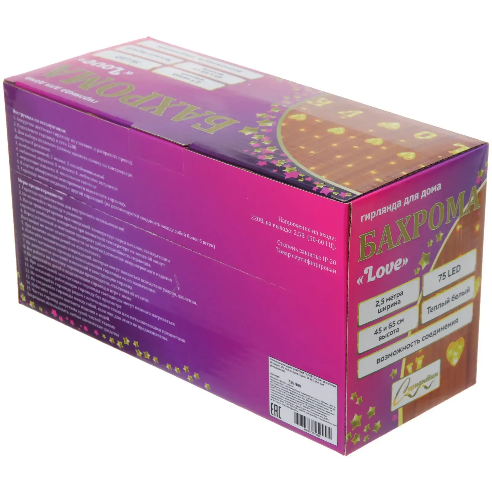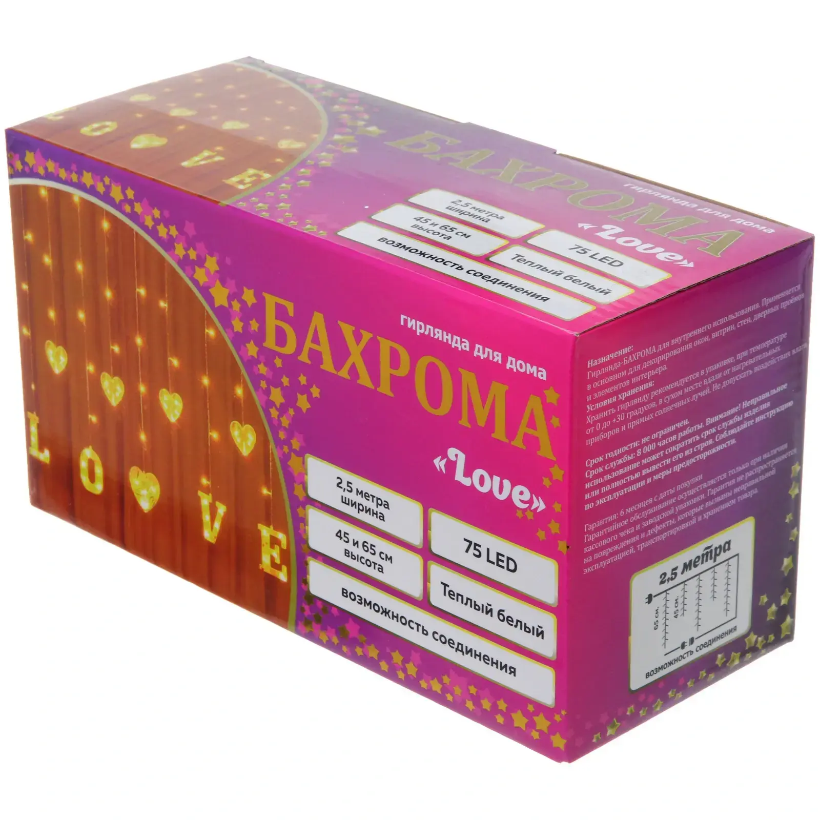 Гирлянда для дома БАХРОМА «LOVE» — это идеальное решение для создания уютной и романтичной обстановки в вашем интерьере. С длиной 2,5 метра и 90 светодиодами, она излучает теплый белый свет, который добавит волшебства в любое пространство. Эта гирлянда станет отличным украшением для праздников, вечеринок или просто для создания уюта в вашем доме.