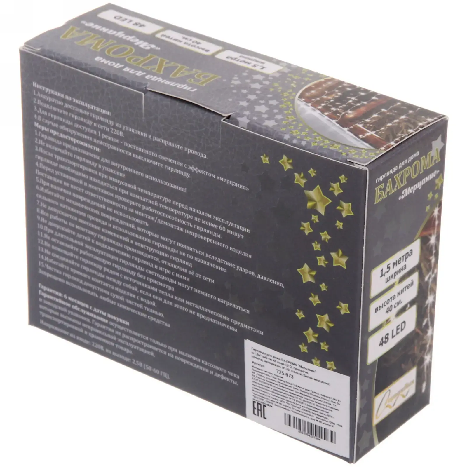 Выбирая гирлянду «Мерцание», вы получаете не только красивый элемент декора, но и надежное устройство с авторежимом. Она проста в использовании: достаточно подключить её к электросети, и вы сможете наслаждаться волшебным светом. Гирлянда выполнена из качественных материалов, что обеспечивает её долговечность и надежность. Кроме того, она защищена от влаги (IP-20), что позволяет использовать её в помещениях.