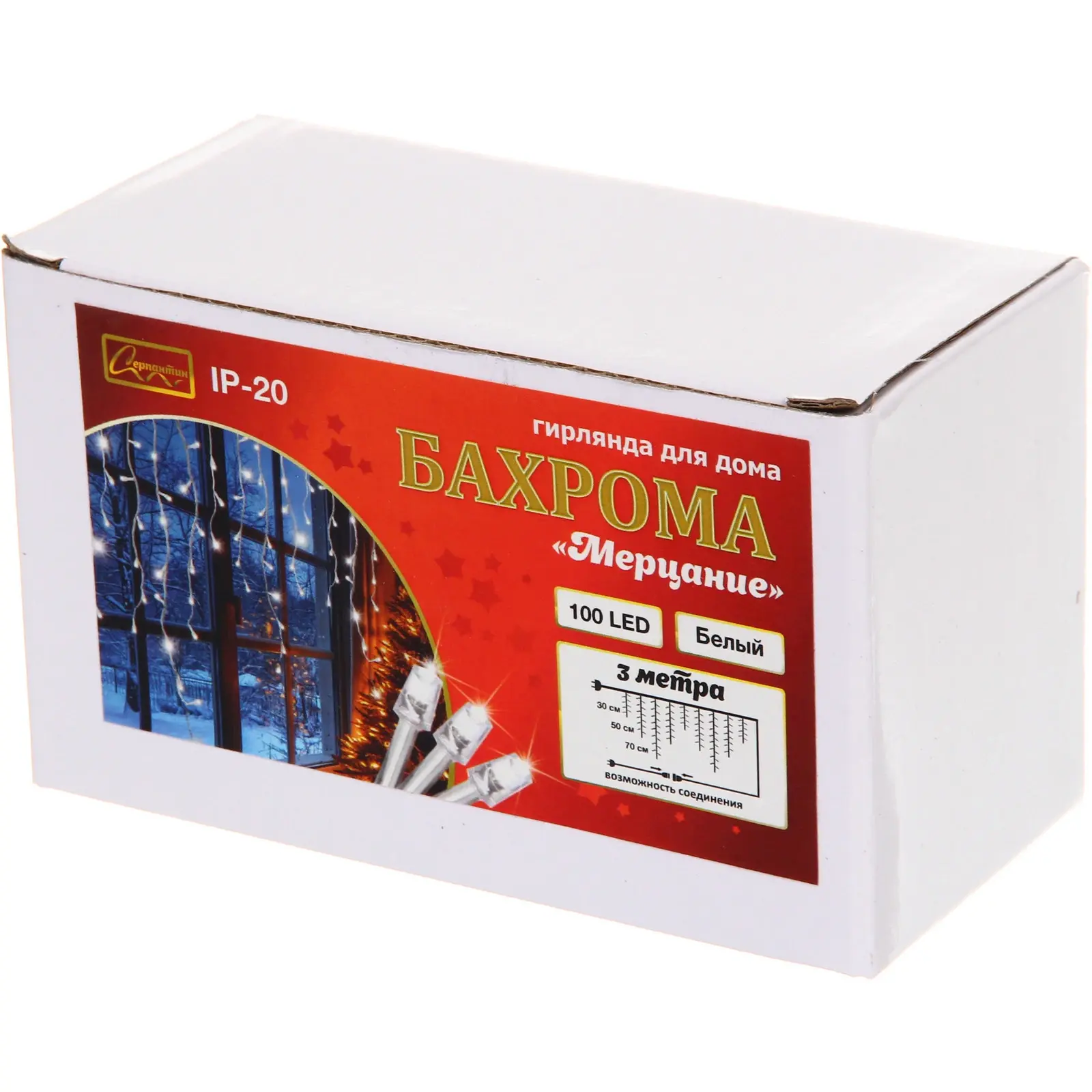 Гирлянда для дома БАХРОМА «Мерцание» ш3м* в0,3/0,5/0,7 см 100 ламп LED, прозрачн.провод,1 реж, IP-20, Белый (возможность соединения)