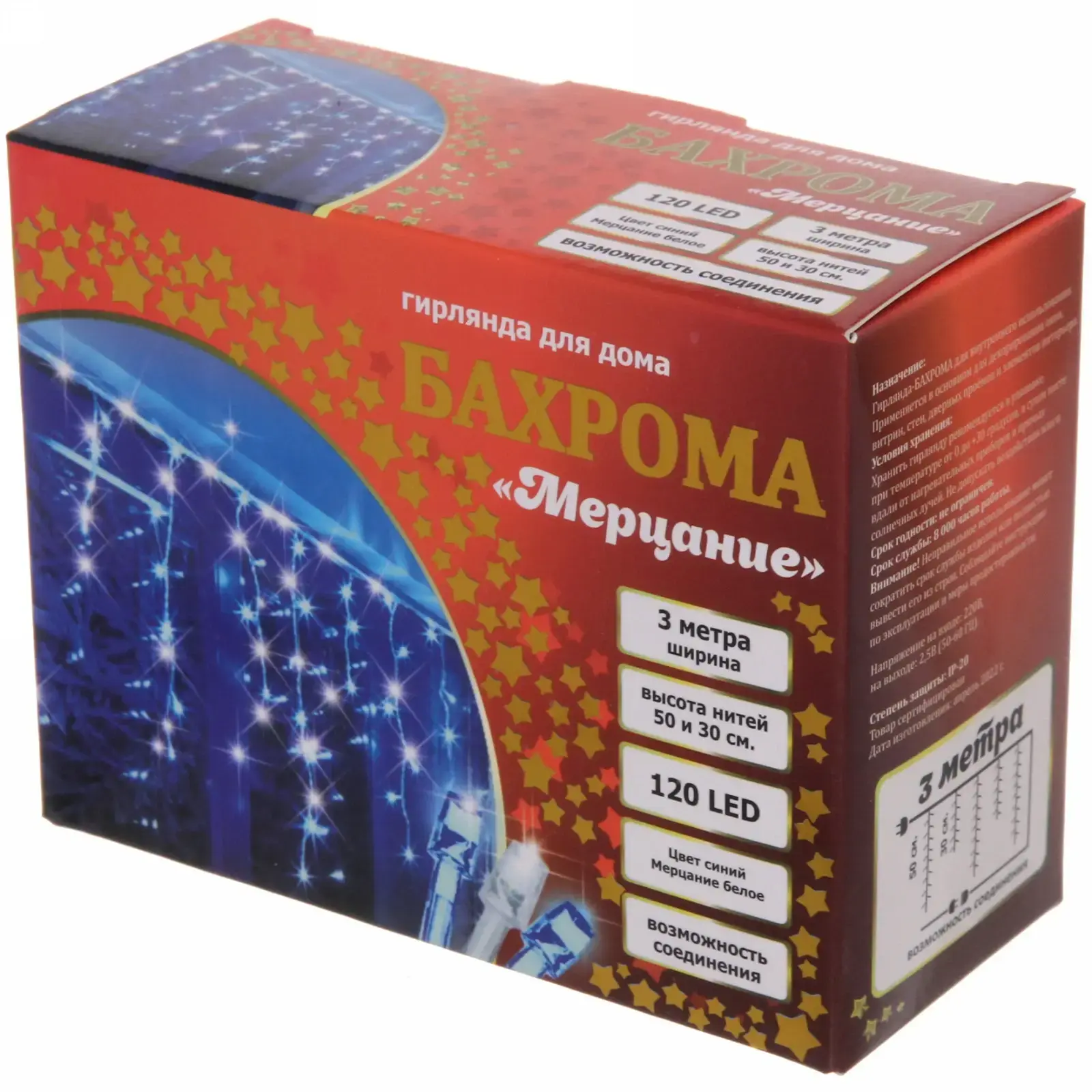 Гирлянда для дома БАХРОМА «Мерцание» ш3м* в30/50см 120 ламп LED, прозрачн.провод, авторежим, IP-20, Синий/Белый мерцает (возможность соединения)