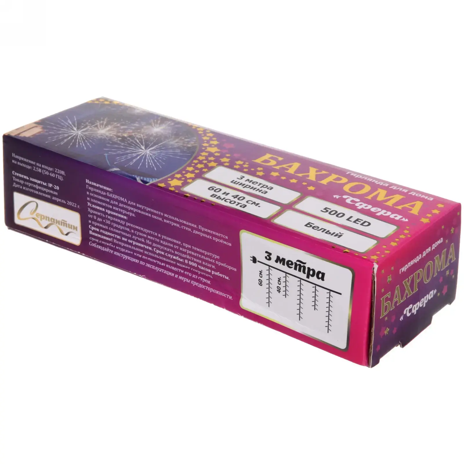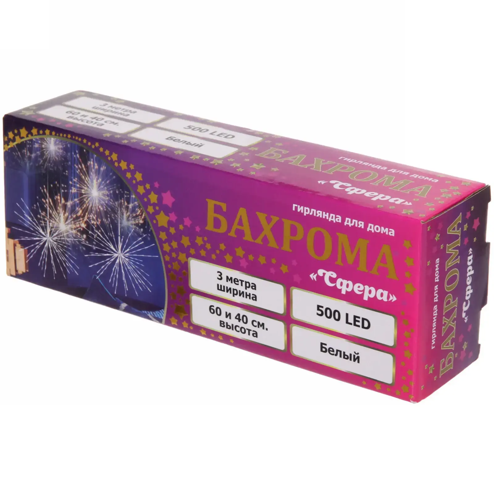 Гирлянда для дома БАХРОМА «Сфера» ш3м*в0,4/0,6м 500 ламп LED, 8 режимов, IP-40, Белый