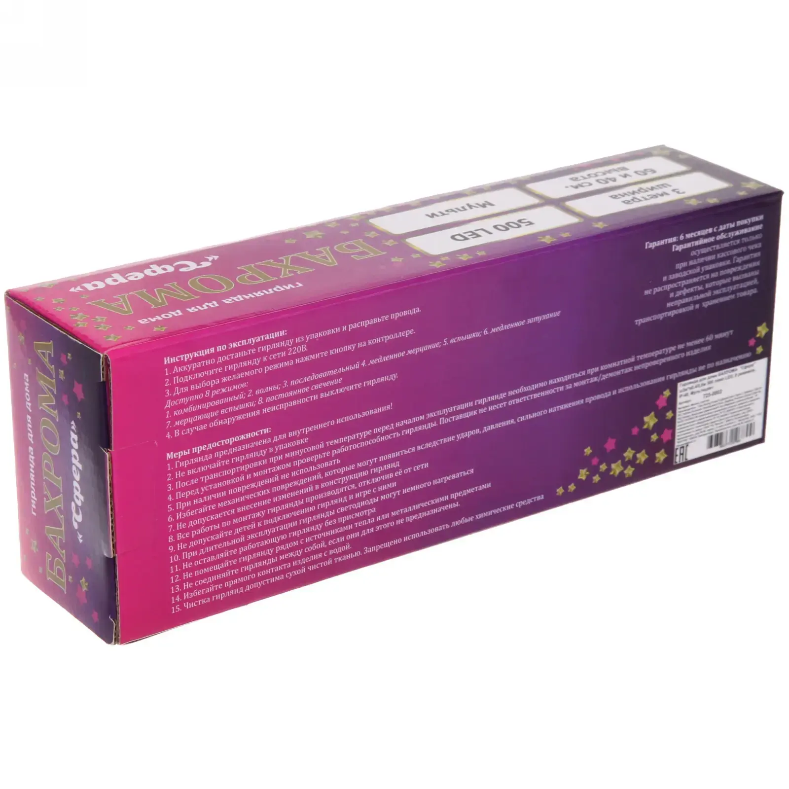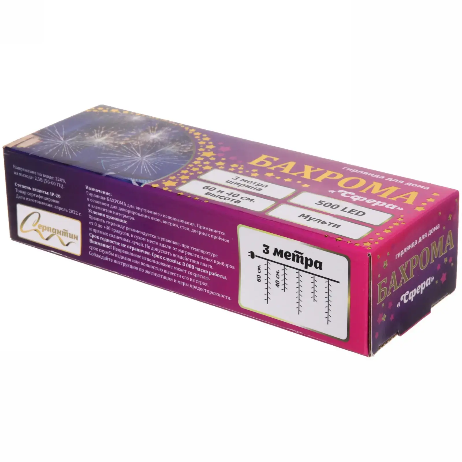 Гирлянда для дома БАХРОМА «Сфера» ш3м*в0,4/0,6м 500 ламп LED, 8 режимов, IP-40, Мультицвет