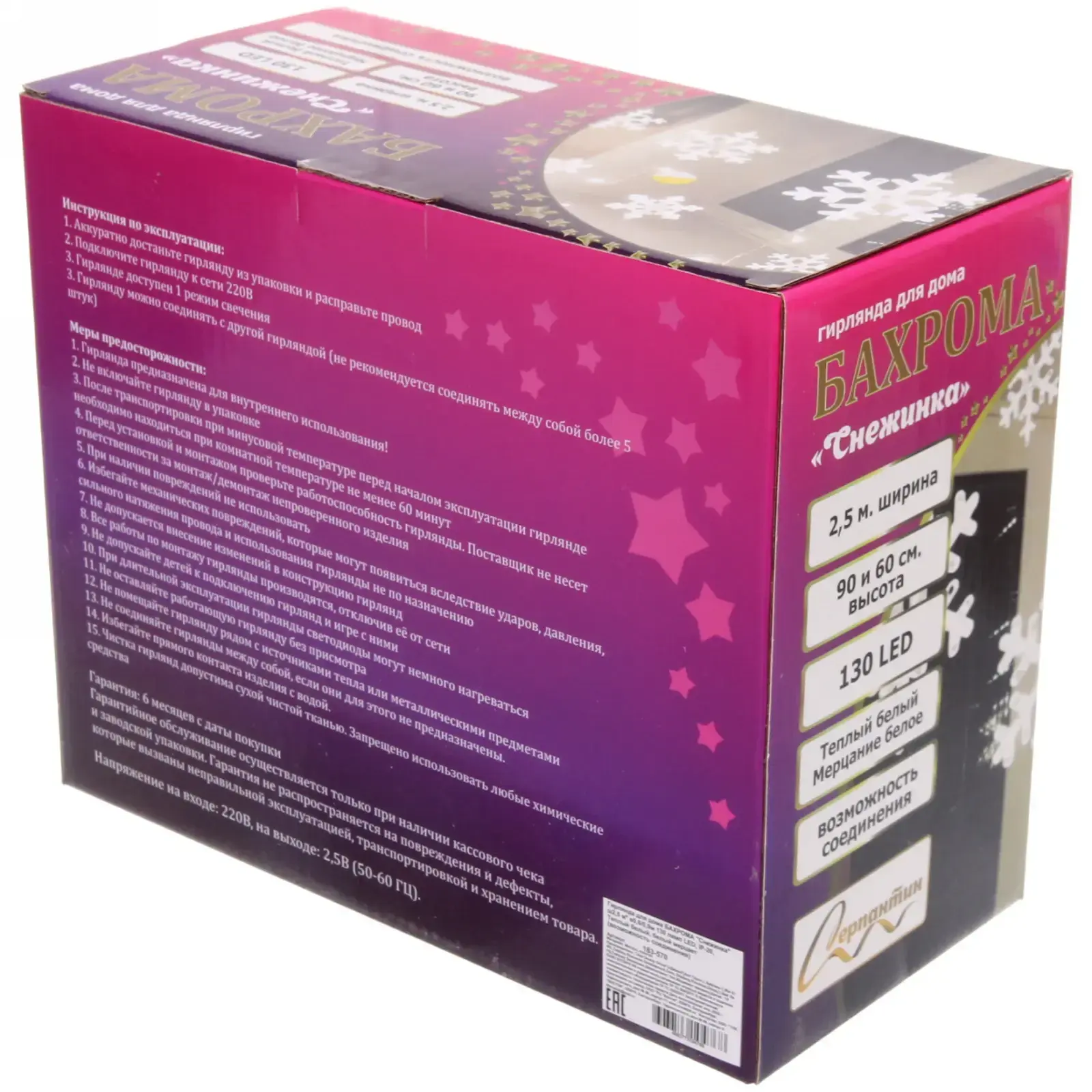 Благодаря продуманной конструкции гирлянду легко монтировать и демонтировать. Она подходит как для украшения жилых помещений, так и для декора офисов, магазинов и ресторанов в предпраздничный период.