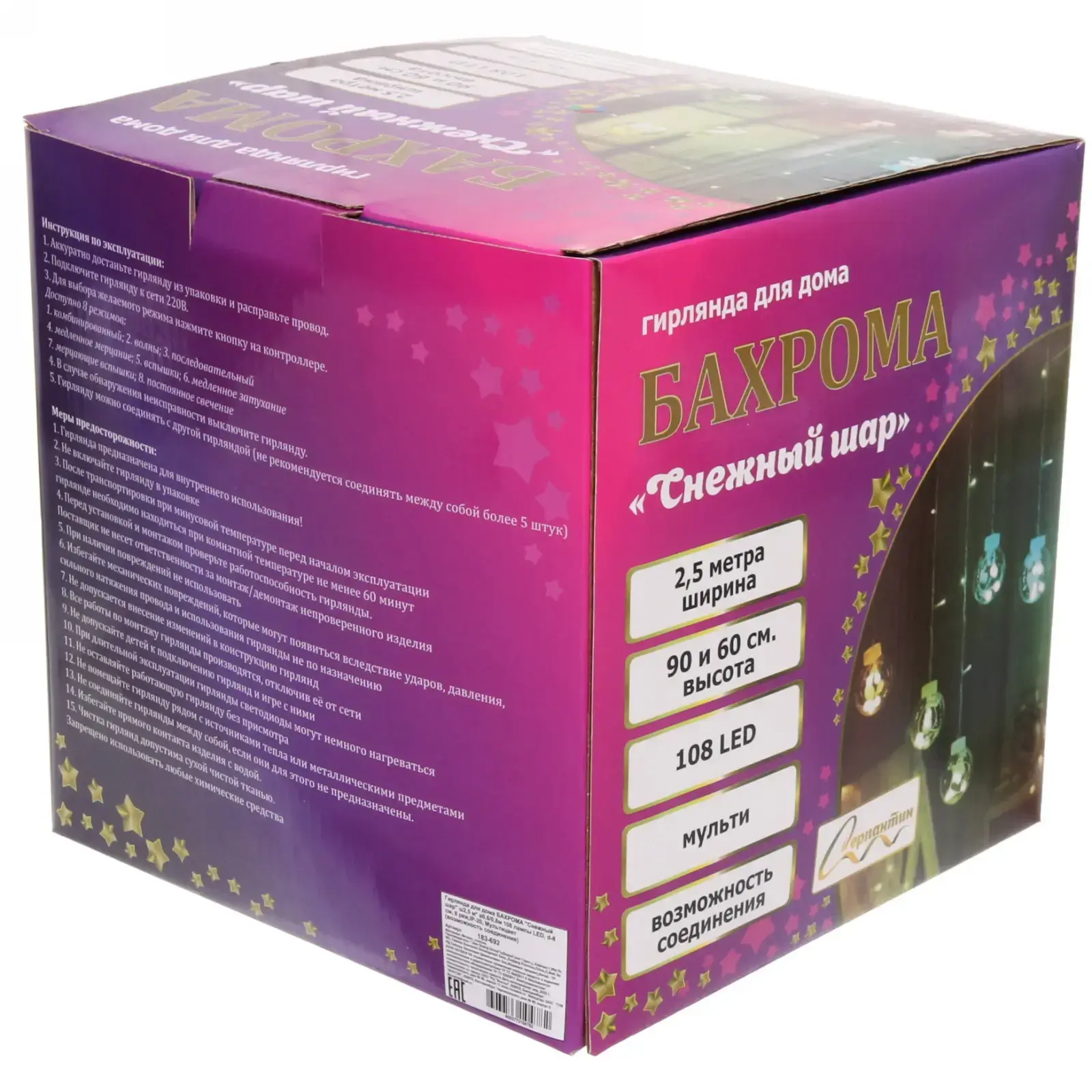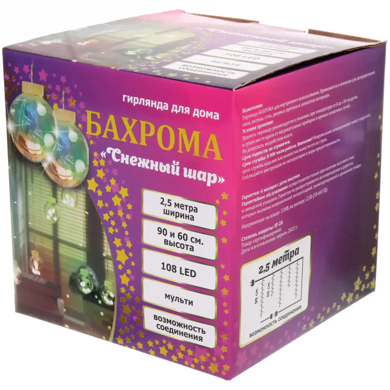 Гирлянда светодиодная БАХРОМА «Снежный шар» — это идеальное решение для создания уютной и праздничной атмосферы в вашем доме или офисе. С длиной 2,5 метра и 108 яркими LED-лампами, она станет настоящим украшением любого интерьера. Мультицветное свечение добавит ярких красок в ваше пространство, а возможность соединения с другими гирляндами позволит вам создать уникальные световые композиции.