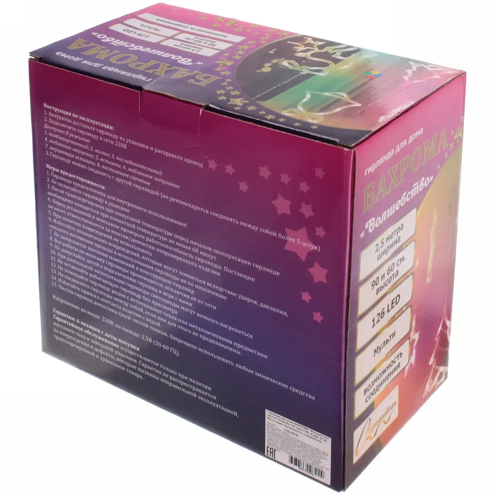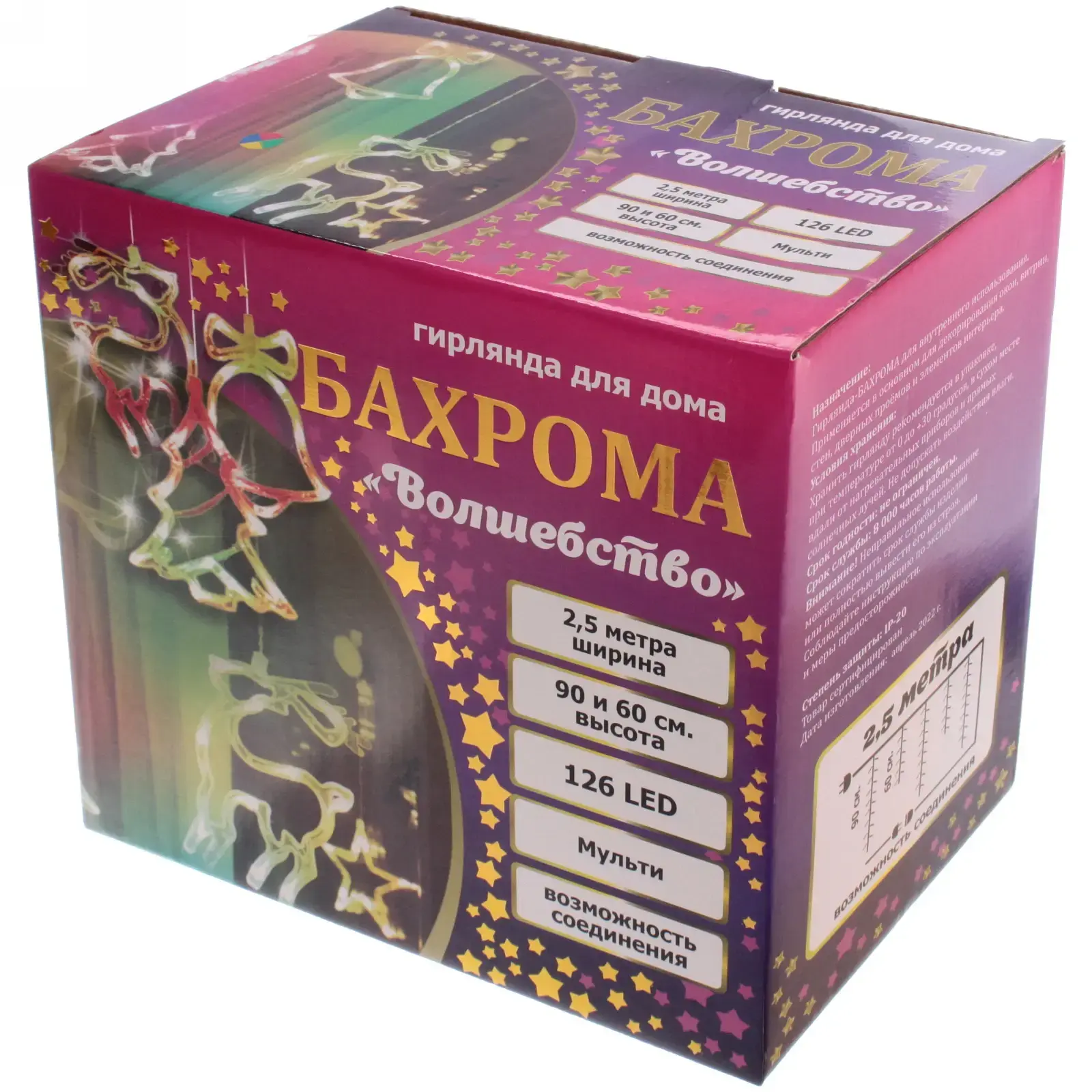 Гирлянда имеет размеры 2,5 метра в длину и 0,6/0,9 метра в высоту, что позволяет легко разместить её в любом интерьере. Она выполнена из металла и пластика, что обеспечивает её легкость и прочность. Не упустите возможность сделать ваш дом более уютным и красивым с гирляндой БАХРОМА «Волшебство»!
