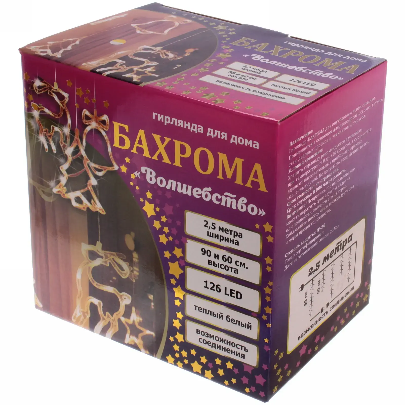 Гирлянда имеет размеры 2,5 метра в длину и 0,6/0,9 метра в высоту, что делает её универсальной для различных интерьеров. Она изготовлена из металла и пластика, что обеспечивает легкость и прочность конструкции. Не упустите возможность сделать ваш дом более уютным и красивым с гирляндой «Волшебство»!