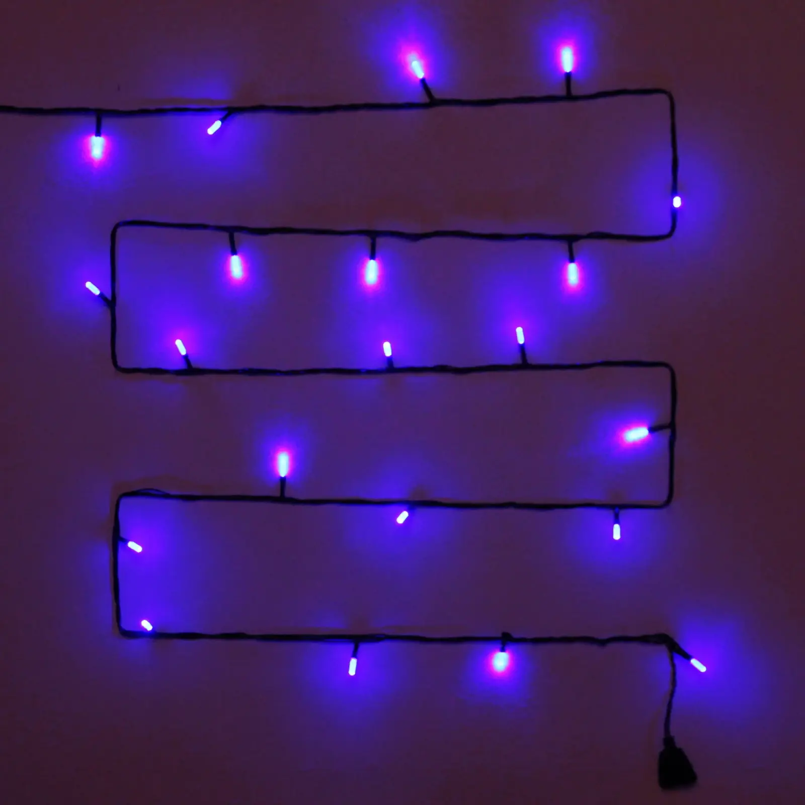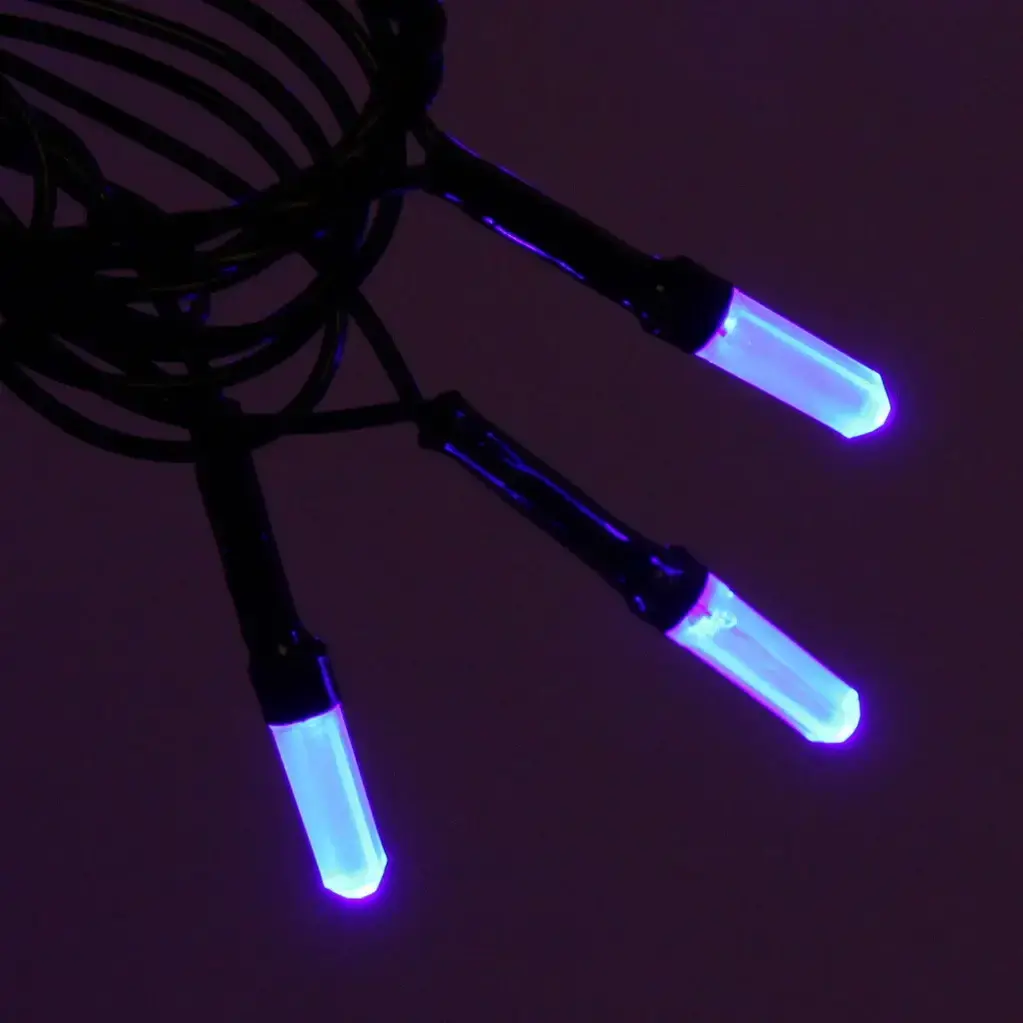 Гирлянда выполнена из качественных материалов: металл и пластик, что обеспечивает надежность и долговечность. Длина гирлянды составляет 5 метров, а количество ламп — 36. Каждый светодиод имеет цилиндрическую форму и излучает яркий синий свет, создавая волшебное освещение. Не упустите возможность добавить этот стильный элемент декора в ваш дом!