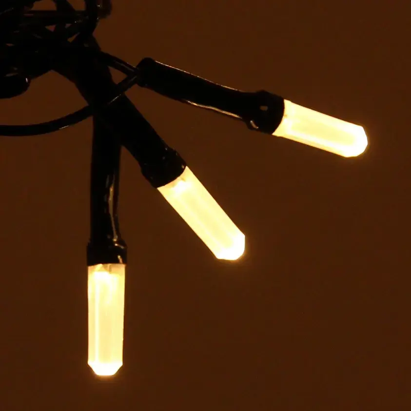 Металлическая основа ламп и пластиковая изоляция провода обеспечивают долговечность конструкции. Система соединения позволяет создавать гирляндные цепи до 50 метров — идеально для масштабного декора. Теплый белый свет (2700K) создает уют без резких бликов, сохраняя естественную цветопередачу окружающих предметов.