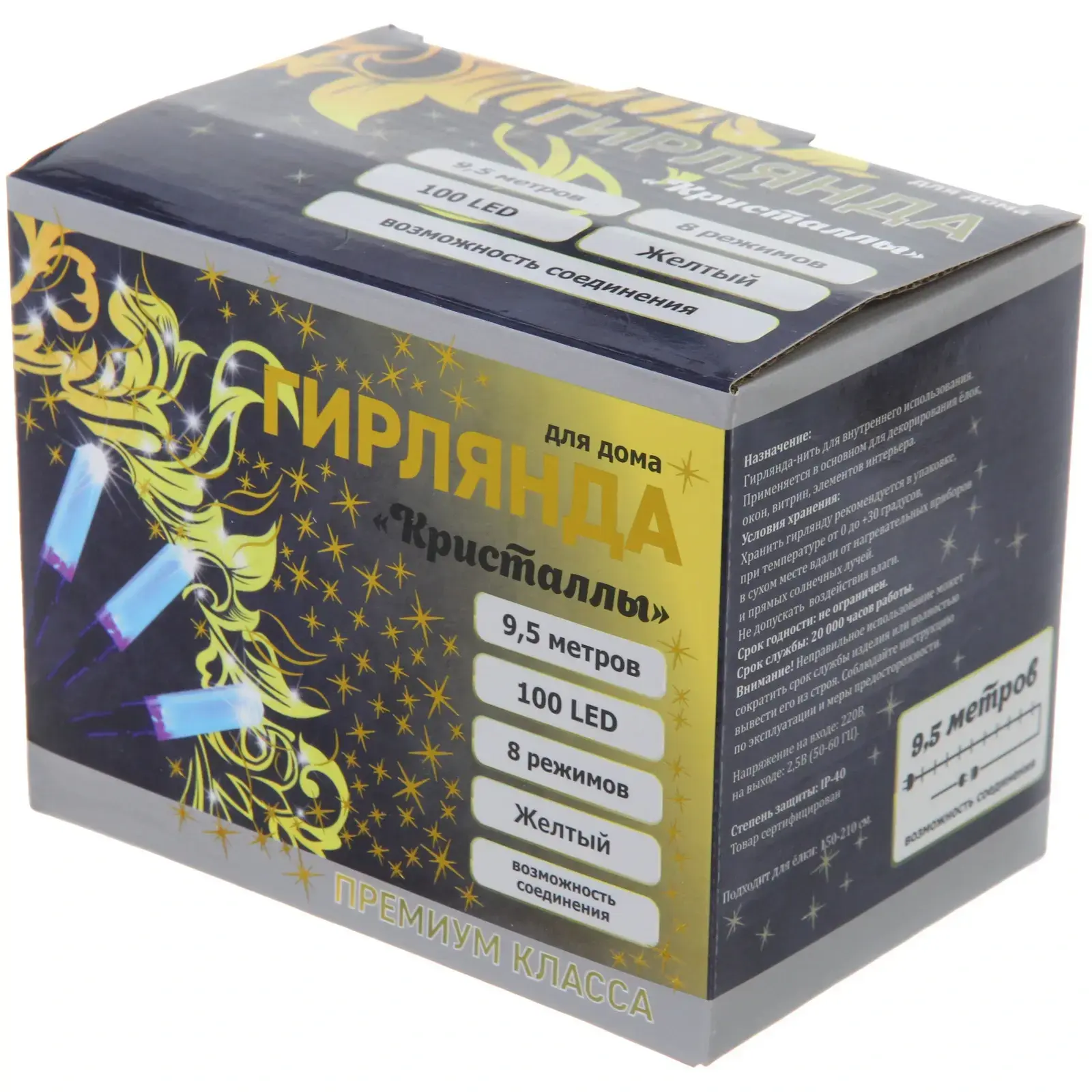 Создайте атмосферу праздника и уюта с гирляндой LED «Кристаллы». Эта гирлянда длиной 9,5 метров с 100 яркими лампами в желтом цвете добавит элегантности и стиля в любой интерьер. Благодаря уникальному дизайну, светодиоды имитируют кристаллы, которые красиво играют светом, создавая эффект ледяных структур или драгоценных камней. Гирлянда идеально подходит для новогодних праздников, вечеринок и романтических вечеров.