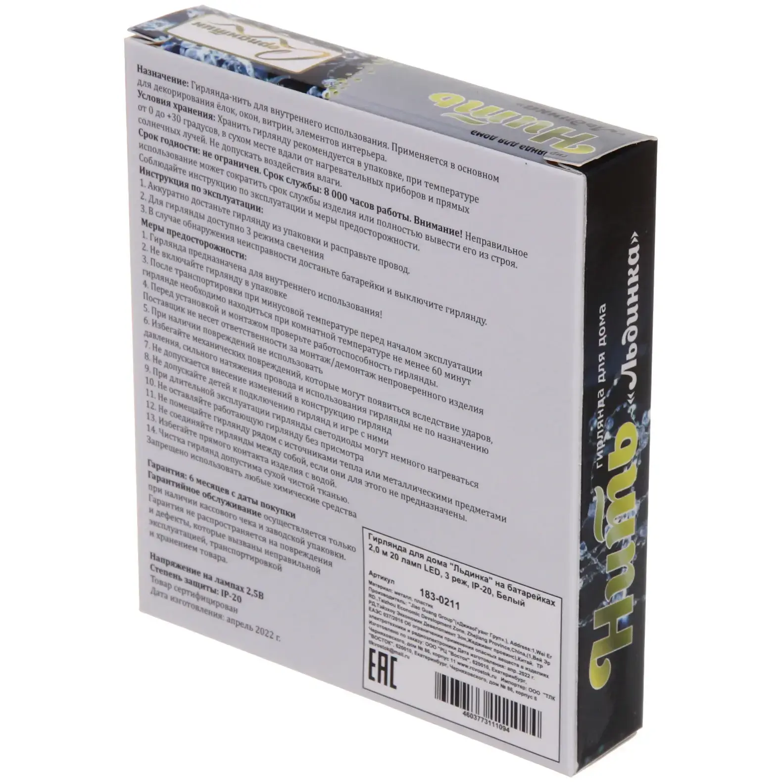 Гирлянда для дома «Льдинка» на батарейках 2,0 м 20 ламп LED, 3 реж, IP-20, Белый