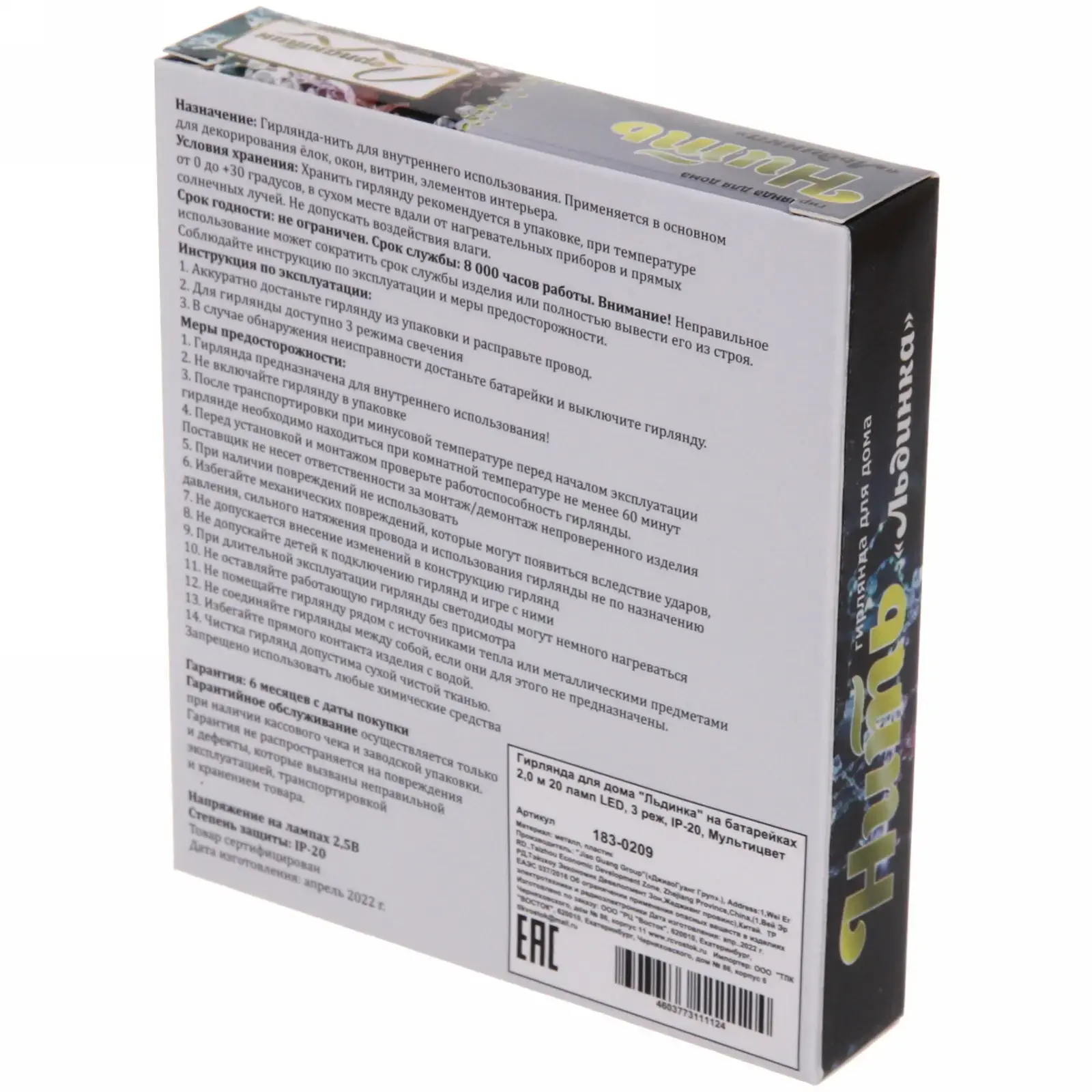 Создайте атмосферу зимней сказки с гирляндой LED «Льдинка». Эта гирлянда длиной 2,0 метра с 20 яркими лампами в мультицвете добавит вашему интерьеру свежесть и элегантность. Она идеально подходит для украшения ёлок, окон и дверей, создавая эффект сверкающих бус, переливающихся разными огоньками. Гирлянда работает на батарейках, что делает её удобной для использования в любом месте, где нет доступа к электросети.