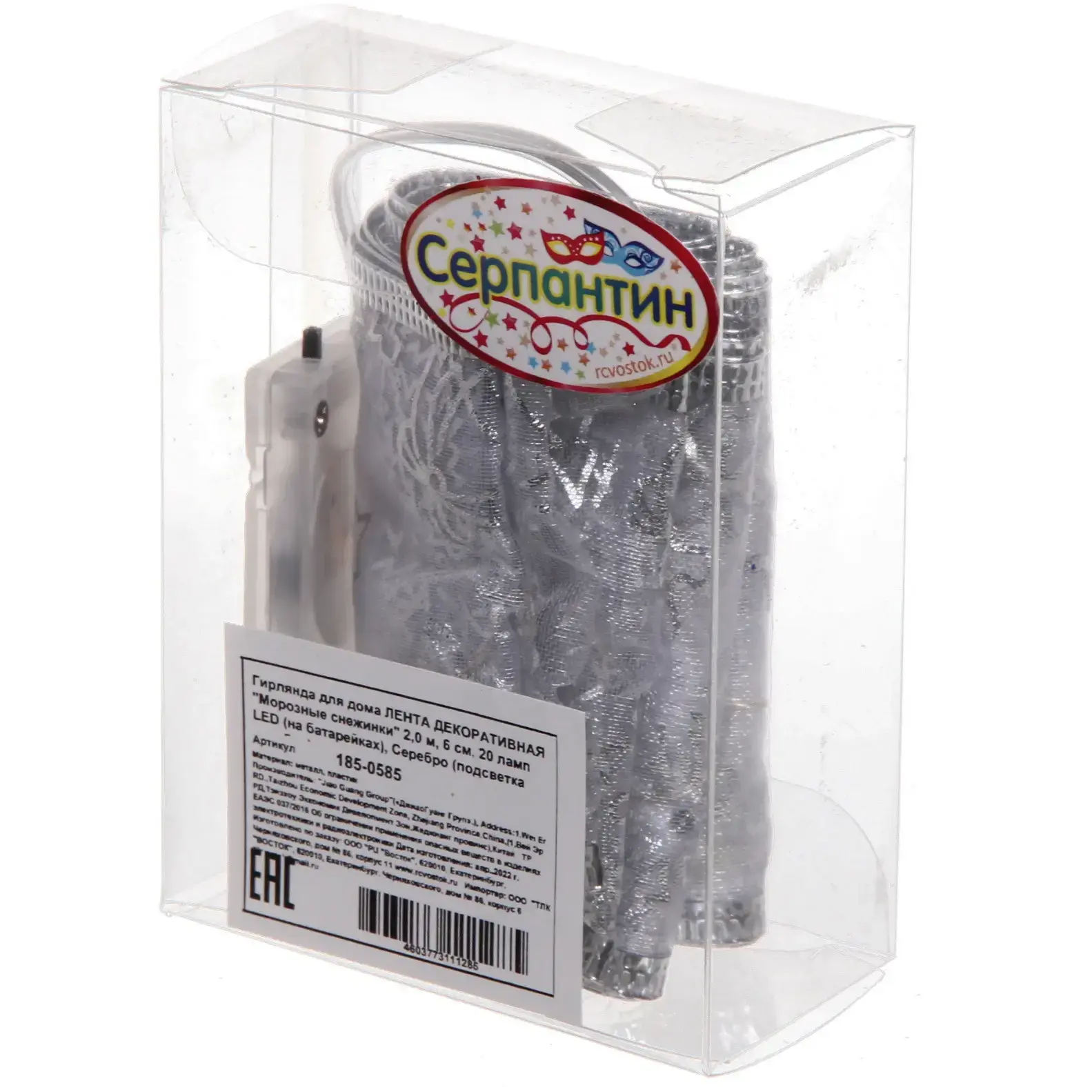 Гирлянда для дома ЛЕНТА ДЕКОРАТИВНАЯ «Морозные снежинки» 2,0 м, 6 см, 20 ламп LED (на батарейках), Серебро (подсветка серебро)