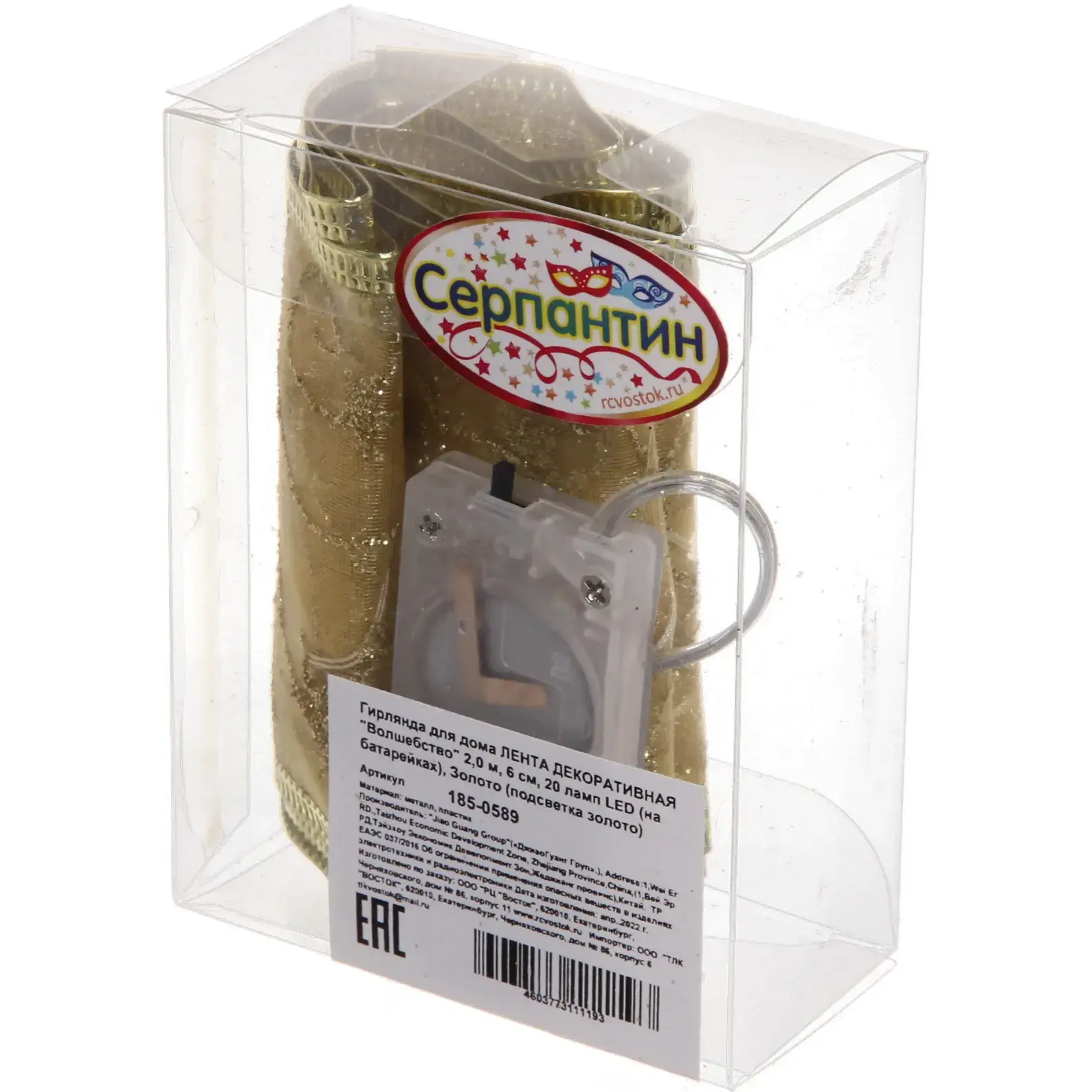 Гирлянда для дома ЛЕНТА ДЕКОРАТИВНАЯ «Волшебство» 2,0 м, 6 см, 20 ламп LED (на батарейках), Золото (подсветка золото)