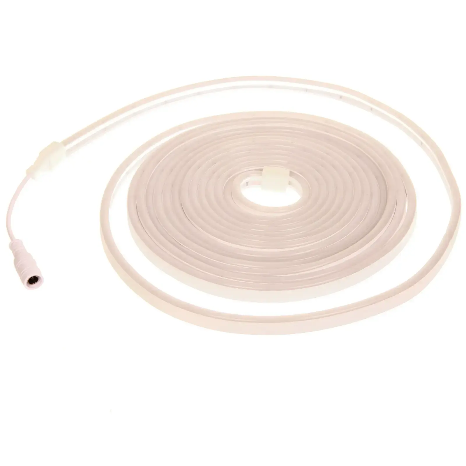 Лента длиной 5 метров с плотностью 120 диодов/метр. Ширина профиля 10 мм позволяет создавать аккуратные световые линии. Теплый белый свет (2700-3000K) комфортен для глаз и подходит для жилых помещений. Компактная катушка удобна для хранения и транспортировки.