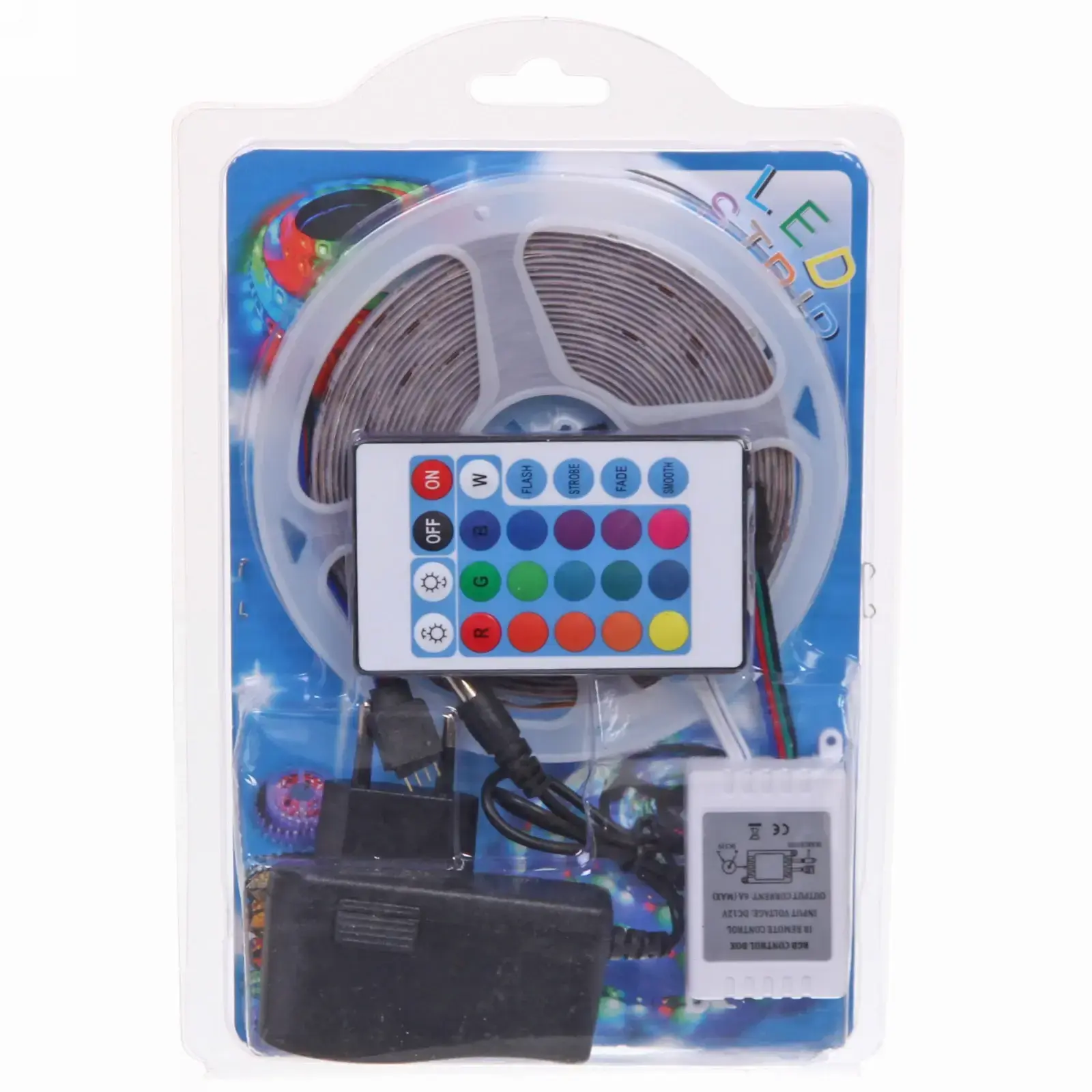 Гирлянда для дома Лента светодиодная самоклейка 5м*8мм, 270 ламп LED, 8 реж, с пультом, степень защиты IP64, RGB