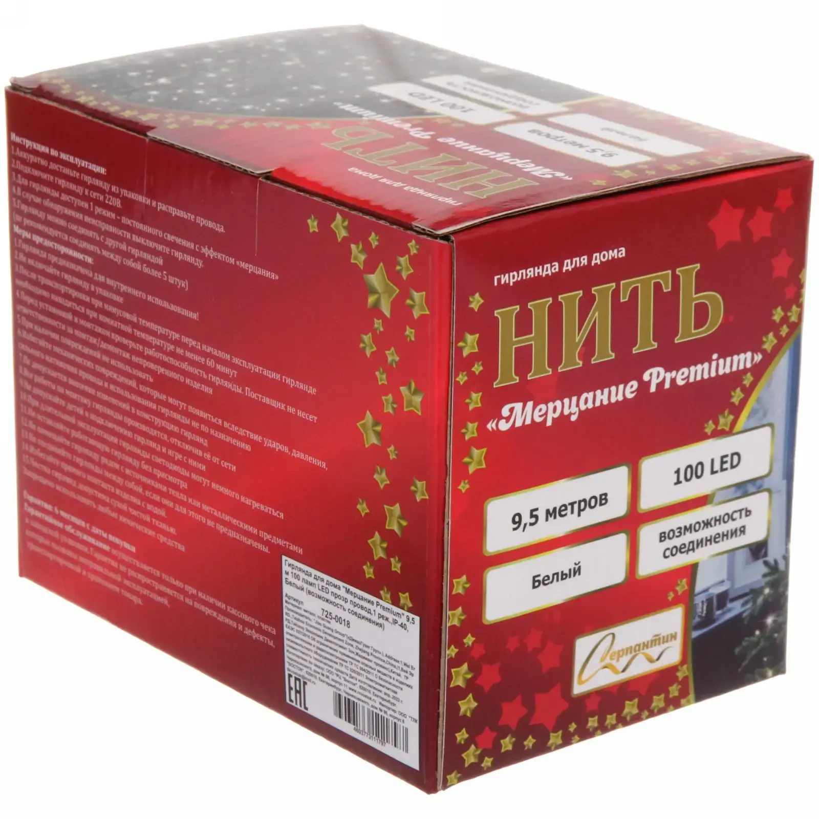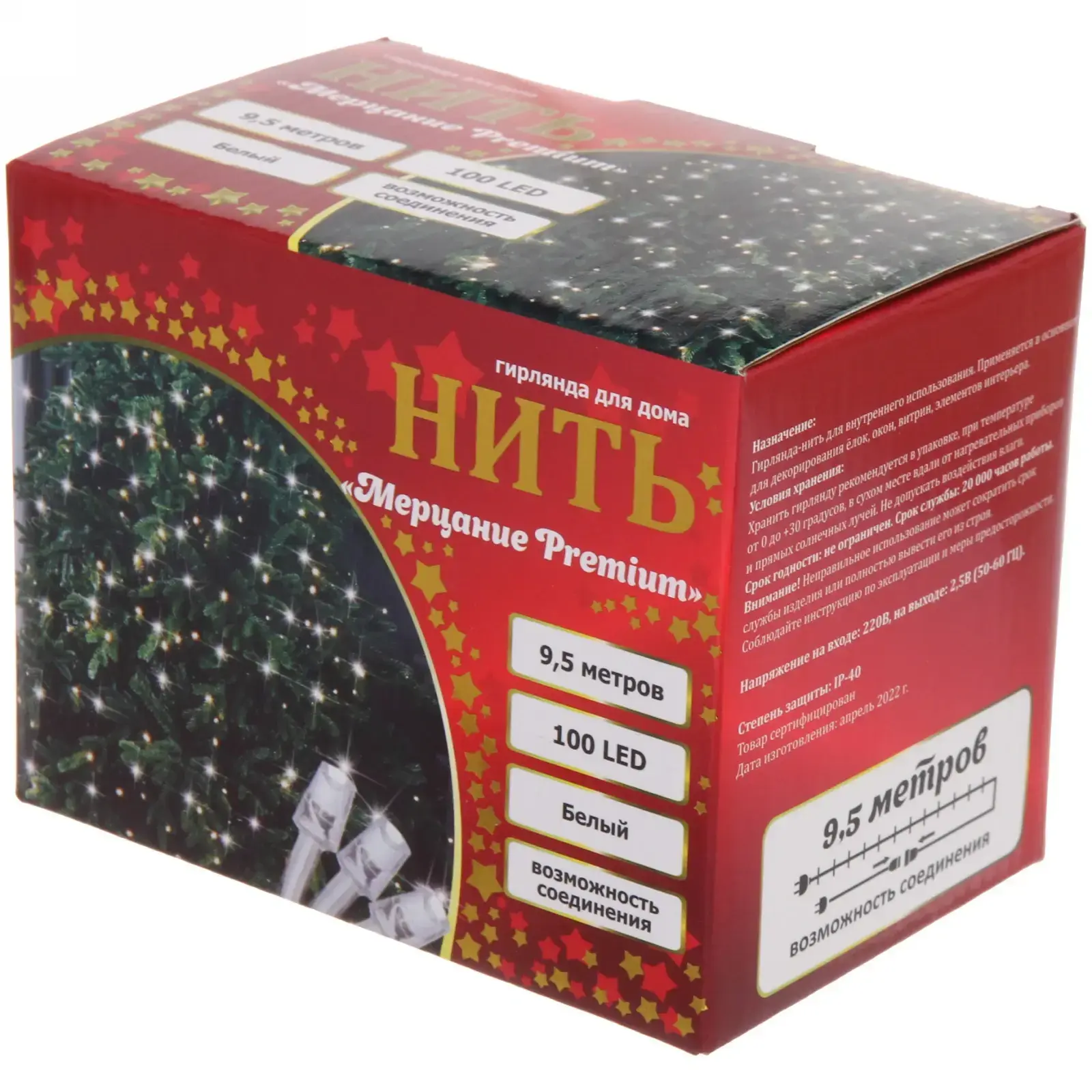 Гирлянда для дома «Мерцание Premium» 9,5 м 100 ламп LED прозр провод,1 реж.,IP-40, Белый (возможность соединения)