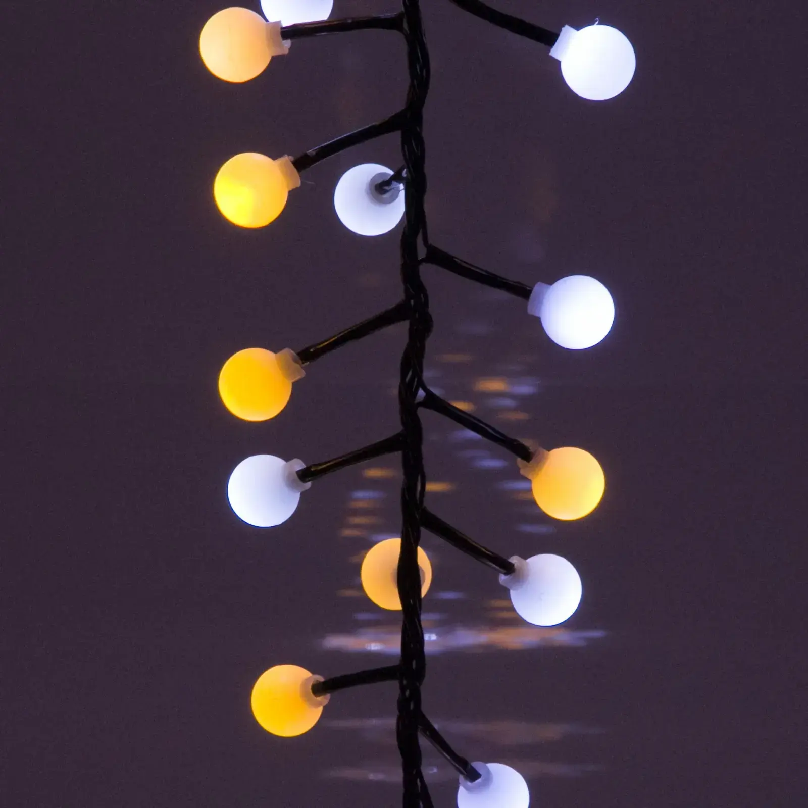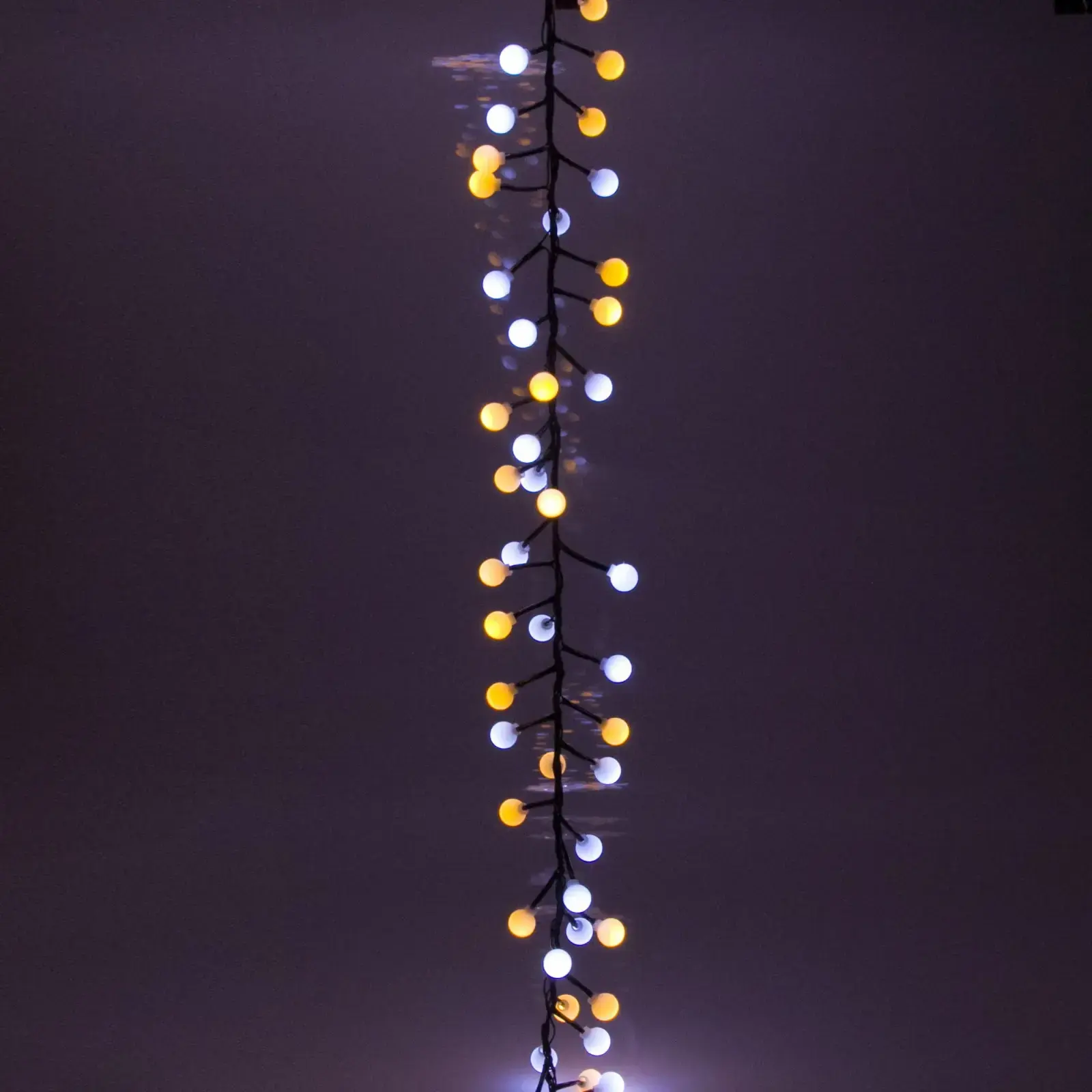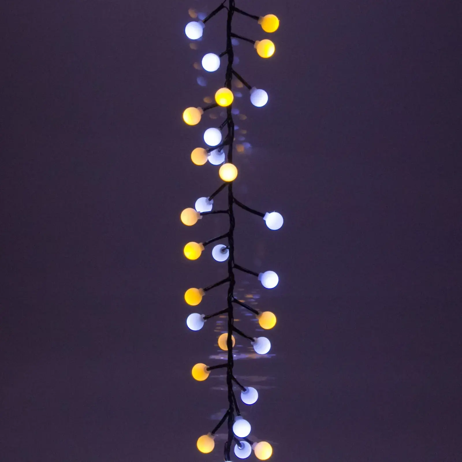 Гирлянда универсальна — её удобно использовать для украшения комнат, окон, стены, лестниц или потолка, а также для оформления новогодних праздников и тематических вечеринок. Диаметр ламп — всего 1,4 см, поэтому модель отлично смотрится как на компактной полке, так и в масштабных композициях. Сочетание тёплого и белого свечения подходит для уютного домашнего декора, фоновая подсветка не создает раздражающего эффекта даже при длительном включении.