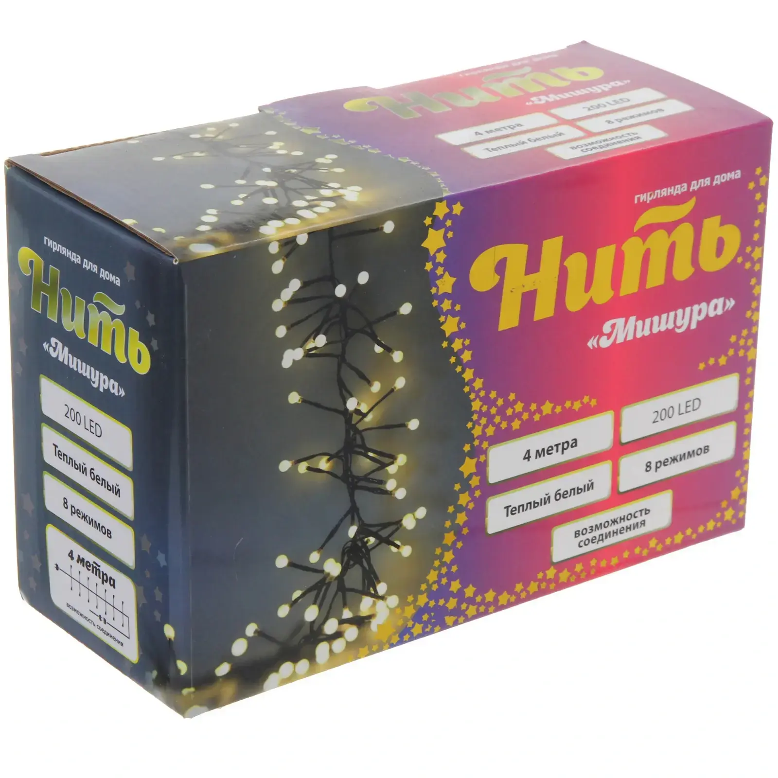 Создайте уютную атмосферу с гирляндой 'Нить Мишура', длиной 4 метра и 200 лампами LED, излучающими теплый белый свет. Эта гирлянда станет идеальным решением для декорирования вашего интерьера или экстерьера, добавляя нотки волшебства в любое пространство. Благодаря черному проводу, она легко впишется в любой стиль оформления, а возможность соединения с другими гирляндами позволит вам создать уникальные световые композиции.