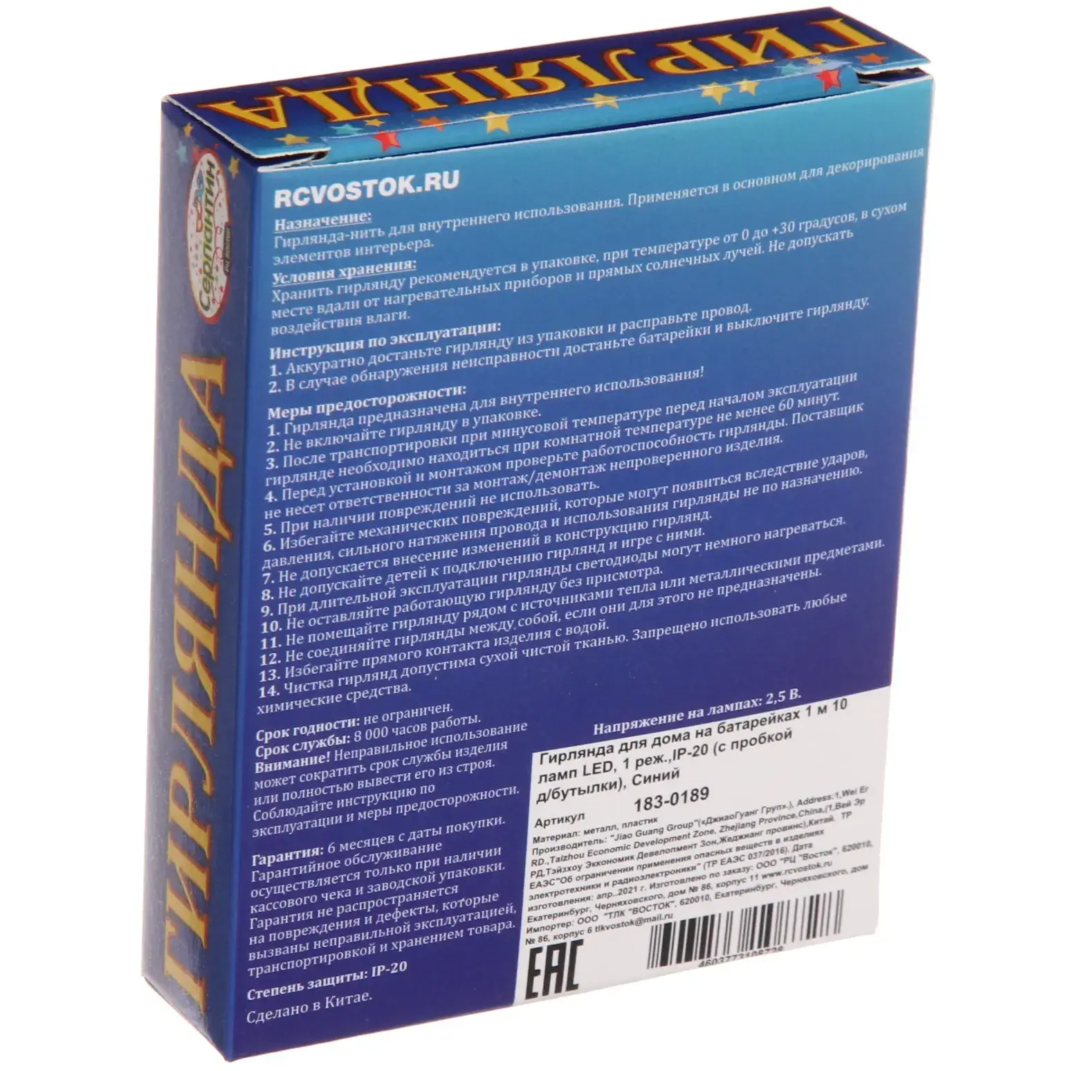 Гирлянда выполнена из качественных материалов: металл и пластик, что гарантирует ее долговечность. Длина гирлянды составляет 1 метр, а количество ламп — 10, что позволяет создать яркое и эффектное освещение. Удобная пробка для бутылки в комплекте позволяет использовать гирлянду в различных декоративных целях.