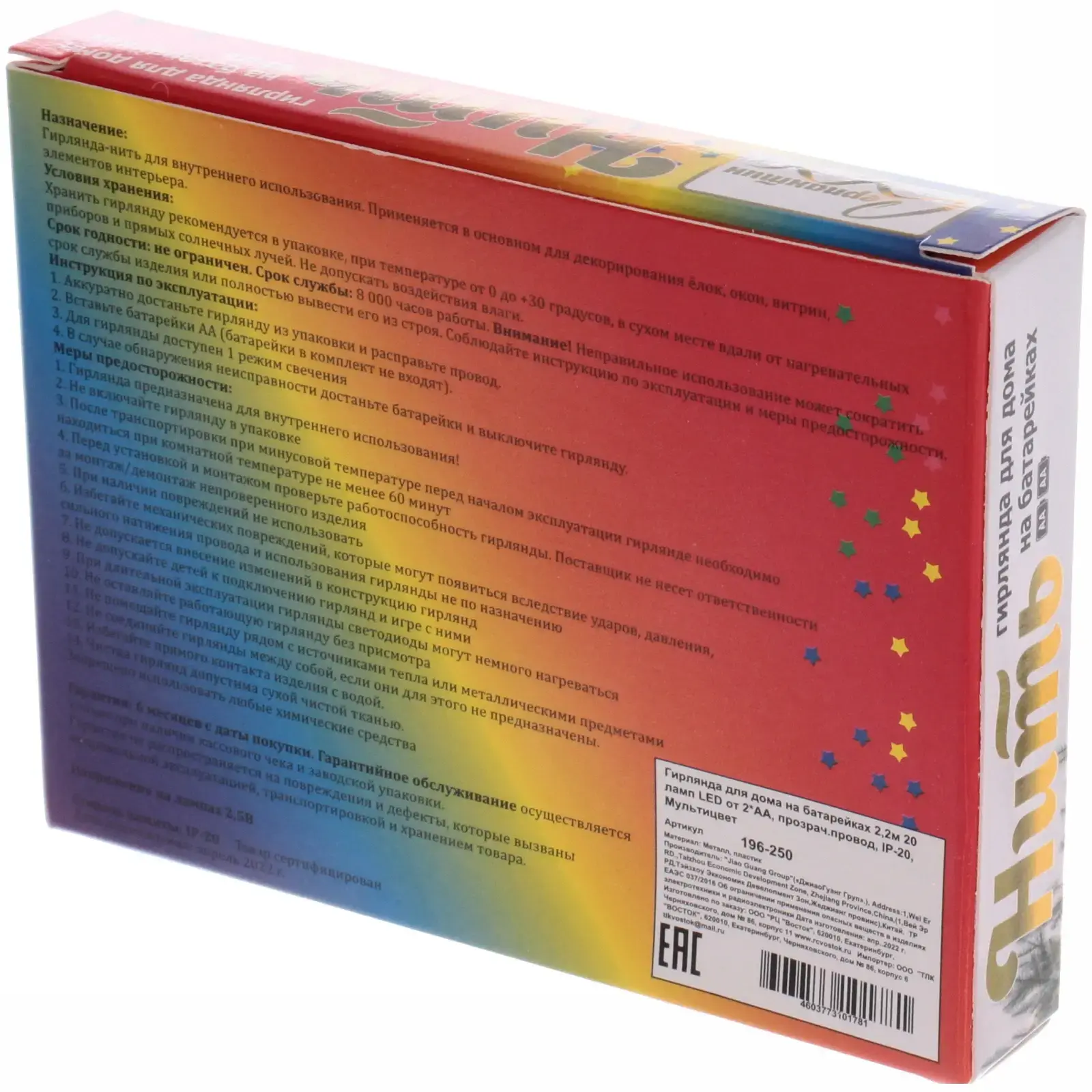Гирлянда светодиодная на батарейках длиной 2,2 метра с 20 лампами LED — это идеальное решение для создания уютной и праздничной атмосферы в вашем доме. Мультицветные огоньки добавят ярких красок в любое пространство, будь то новогоднее украшение или романтический вечер. Благодаря простоте установки и отсутствию необходимости в проводах, гирлянда легко размещается в любом месте, где вам нужно добавить немного света и радости.