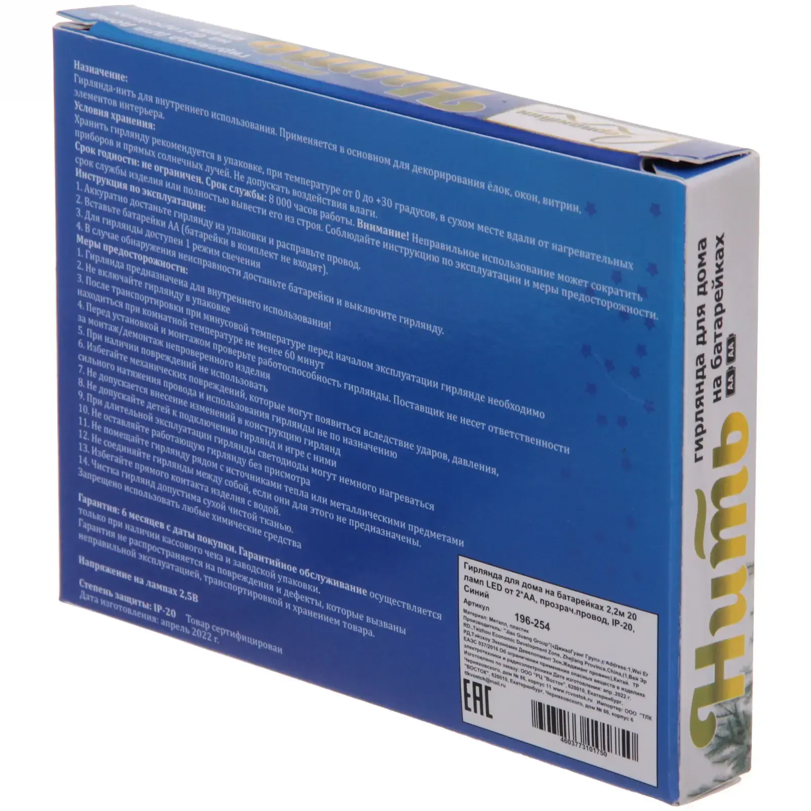 Светодиоды, используемые в гирлянде, обеспечивают долговечность и экономию энергии, что делает её практичным выбором для длительного использования. Гирлянда имеет степень защиты IP-20, что позволяет использовать её в сухих помещениях, защищая от влаги и загрязнений. Благодаря современным технологиям, светодиоды могут светиться ярким синим цветом, создавая эффект волшебства и праздника.