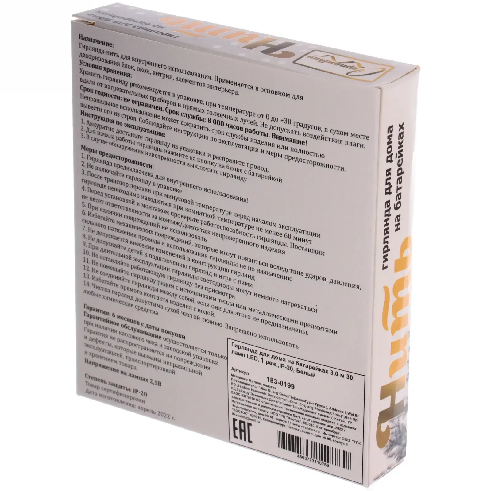 Светодиоды обеспечивают яркое и равномерное освещение, а белый цвет света создает атмосферу спокойствия и уюта. Гирлянда имеет срок службы до 800 часов, что гарантирует долгосрочное использование. Кроме того, она устойчива к температурным колебаниям, что позволяет использовать её в различных условиях, от -10 до +30 градусов Цельсия.