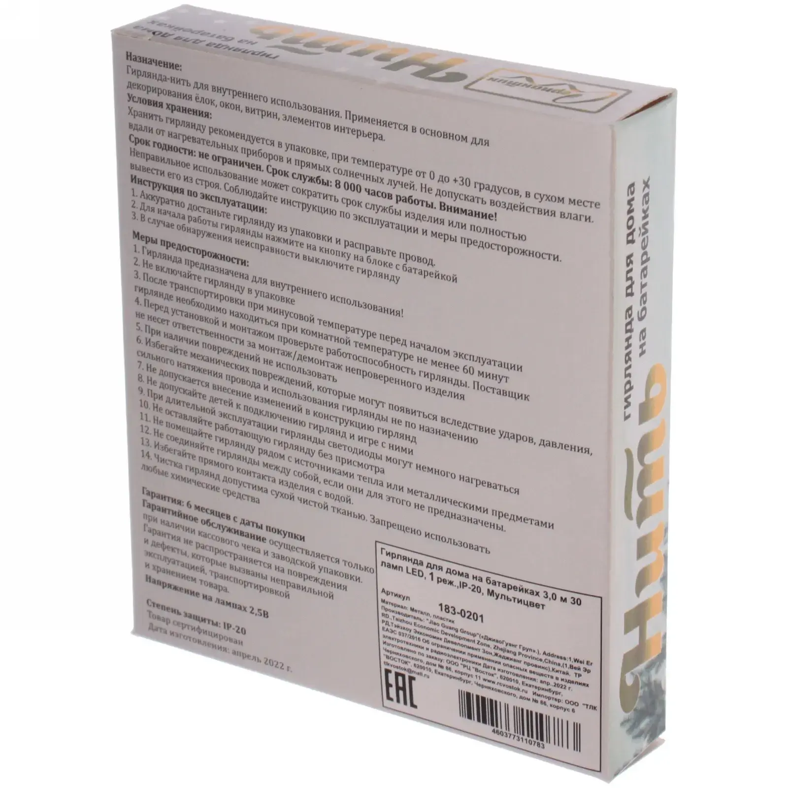 Гирлянда светодиодная на батарейках длиной 3 метра с 30 лампами LED — это идеальное решение для создания праздничного настроения в вашем доме. Мультицветные огоньки добавят ярких красок в любое пространство, а простота использования позволит вам легко украсить как интерьер, так и фасады зданий. Благодаря батарейному питанию, гирлянда не требует подключения к электросети, что делает её удобной для использования в любых условиях.