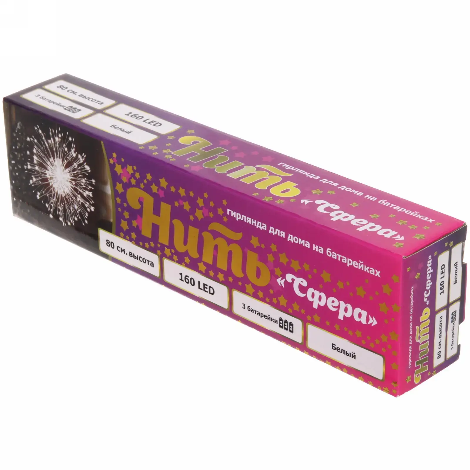 Гирлянда для дома на батарейках «Сфера» 160 ламп LED, d - 30 см, 2 реж.,IP-20, (3хАА), Белый
