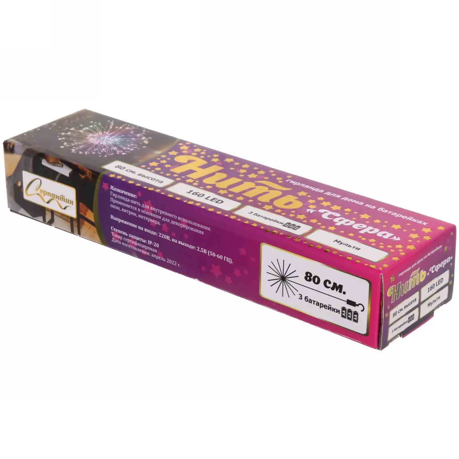 Выбирая гирлянду «Сфера», вы получаете не только красивый декор, но и надежное освещение. Светодиоды обеспечивают долговечность и экономию энергии, а также не нагреваются, что делает гирлянду безопасной для использования в любых условиях. IP-20 означает, что гирлянда предназначена для использования в помещениях, что делает её идеальной для украшения комнат, окон и мебели.