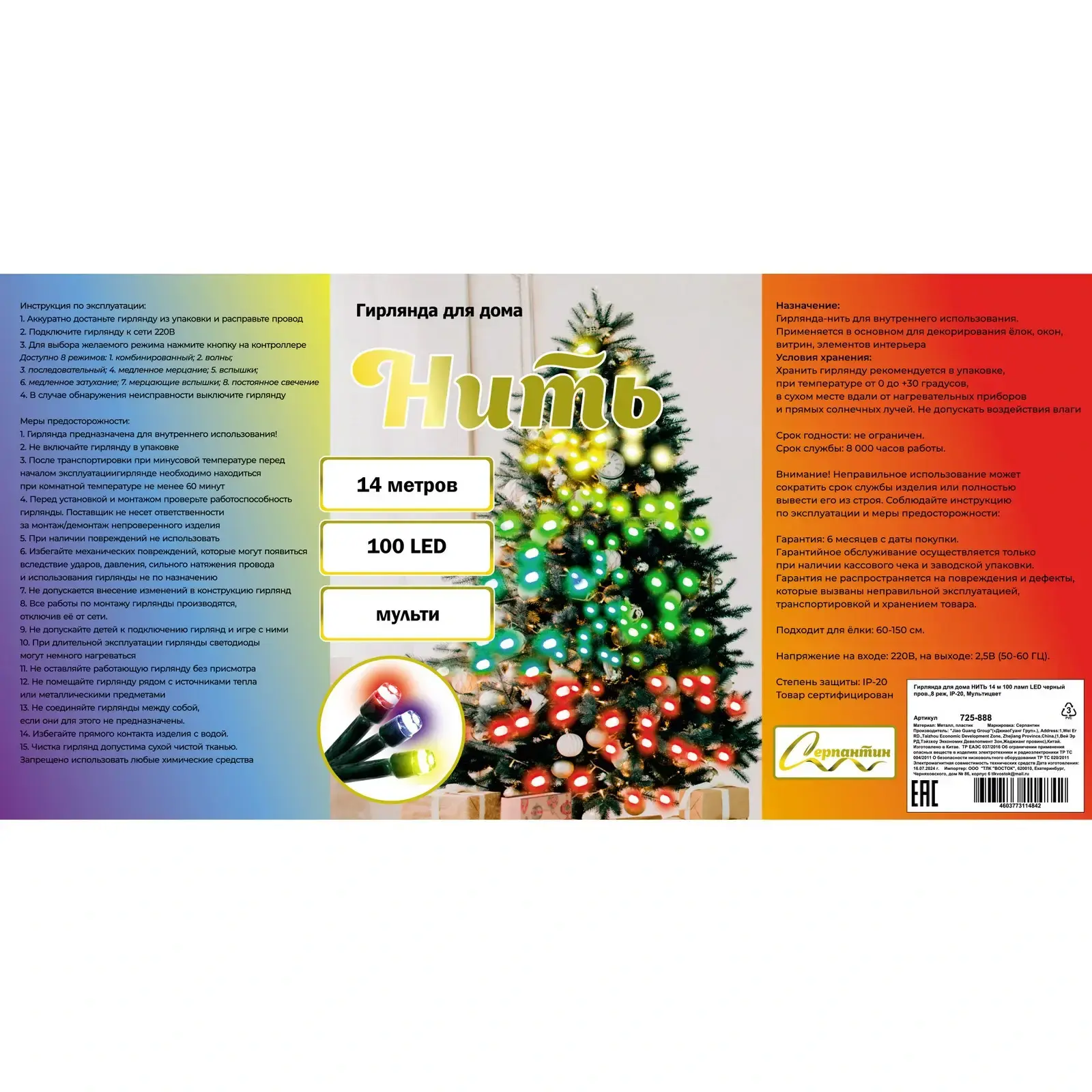 Создайте неповторимую атмосферу уюта и волшебства с гирляндой LED 'Нить'. 100 разноцветных ламп наполнят ваше пространство радужным сиянием, превращая обычную комнату в сказочный уголок.