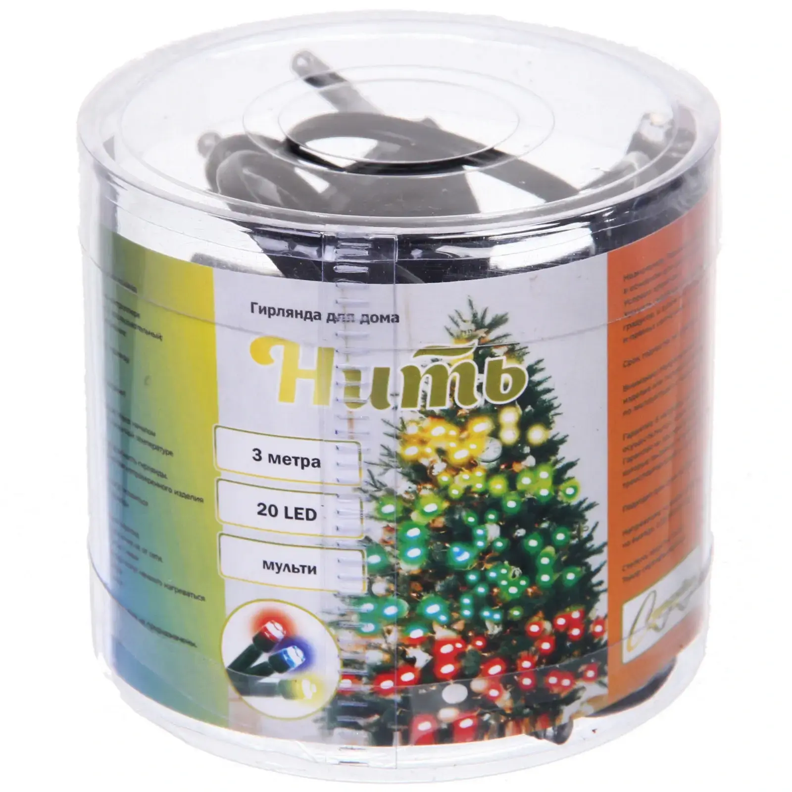 Гирлянда имеет длину 3 метра и состоит из 20 светодиодов, которые равномерно распределены по проводу. Цвета огней включают красный, зеленый, синий, желтый и фиолетовый, что позволяет создать уникальные комбинации освещения. Упаковка содержит инструкции по эксплуатации и меры предосторожности, что делает использование гирлянды безопасным и удобным.