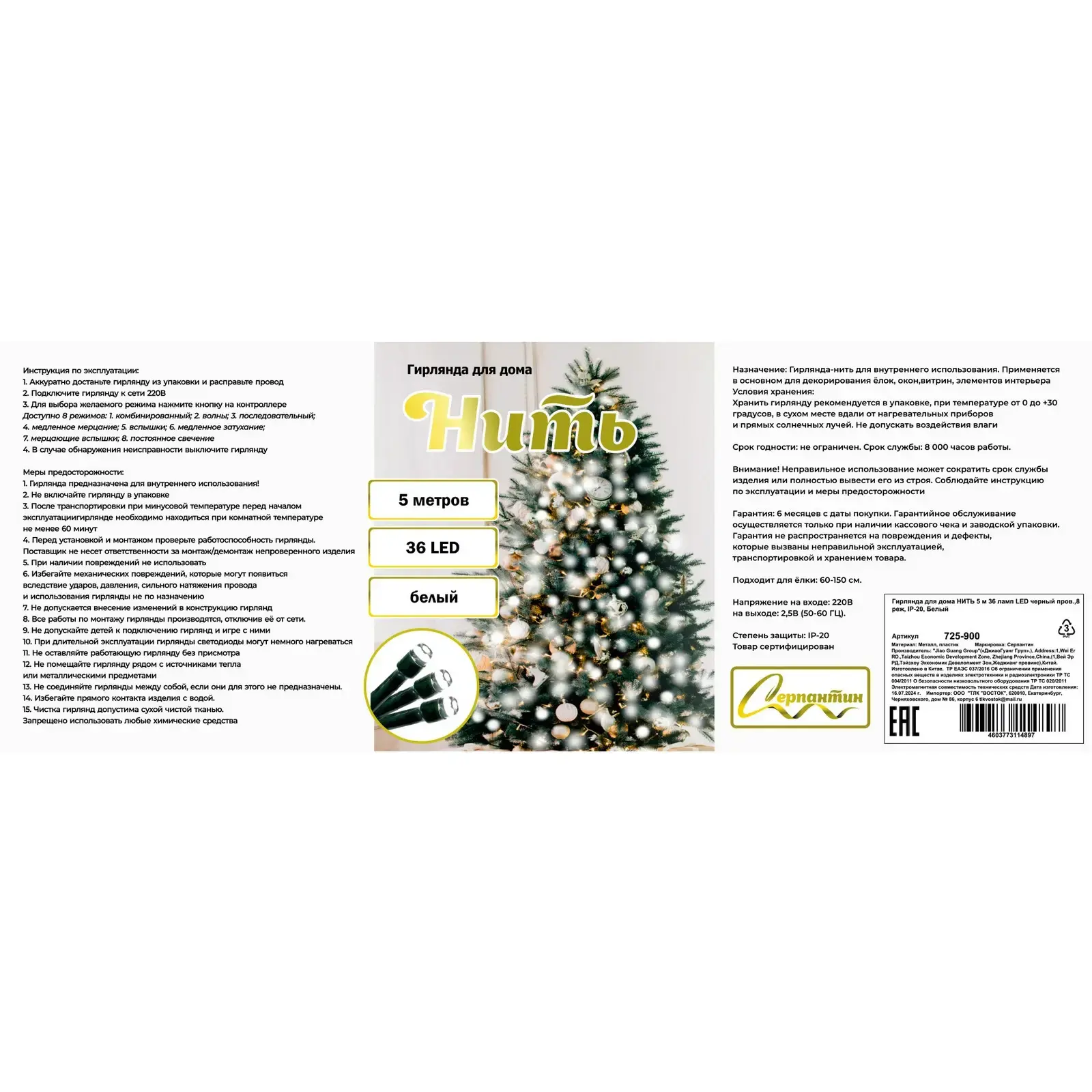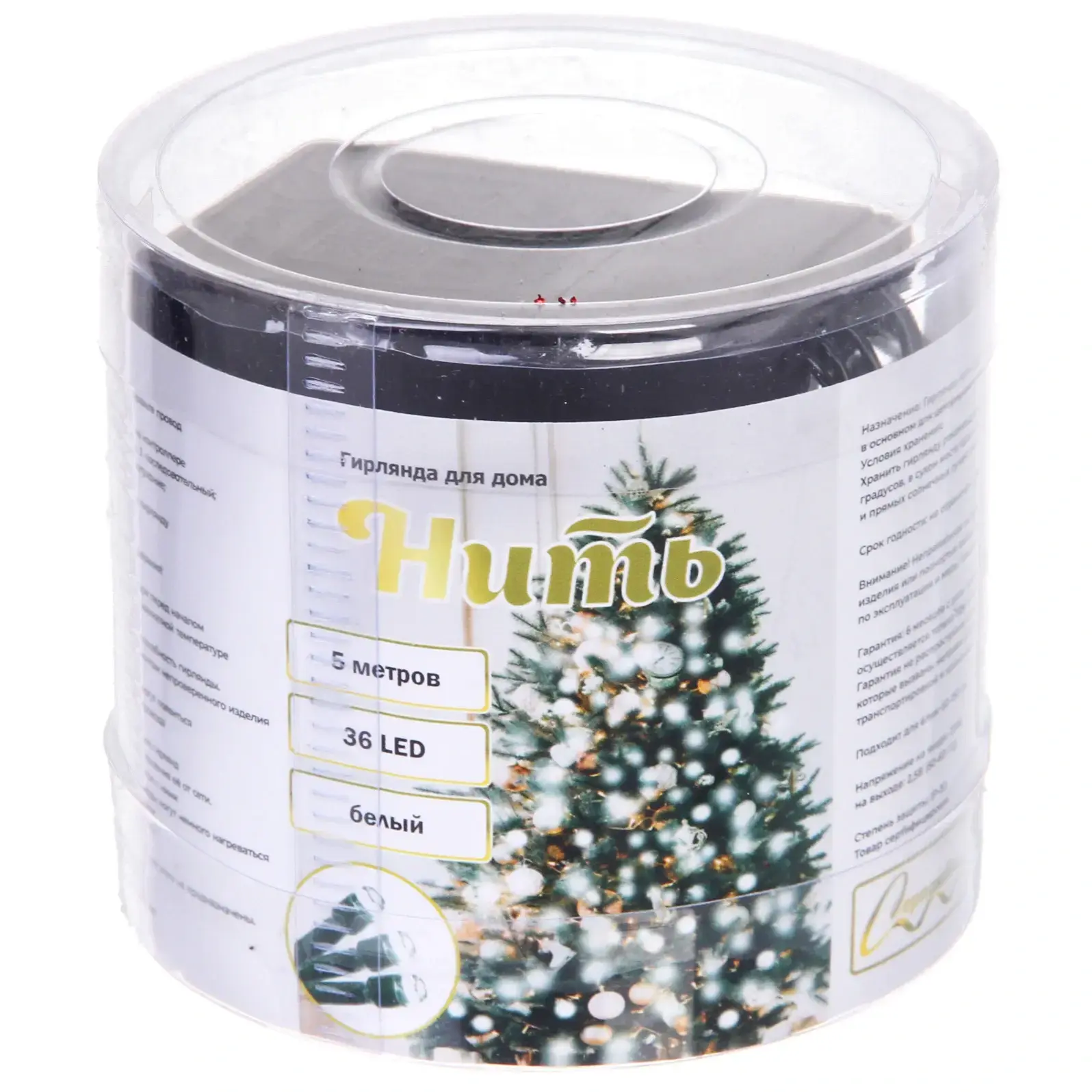 Гирлянда для дома НИТЬ 5 м 36 ламп LED черный пров.,8 реж, IP-20, Белый