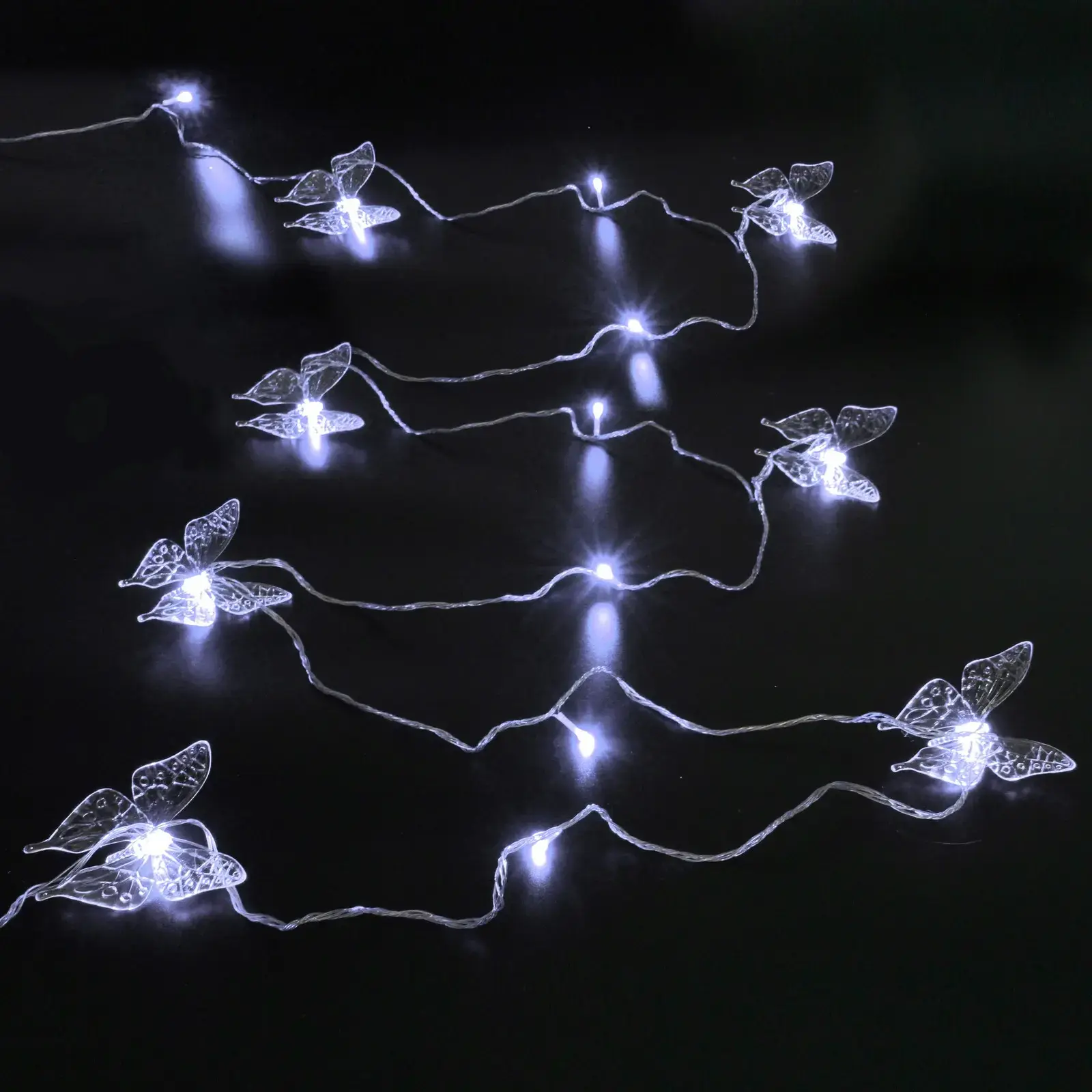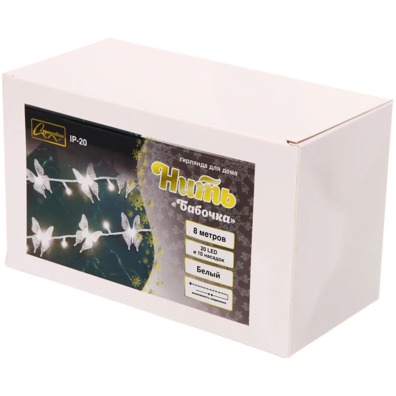 Гирлянда для дома НИТЬ «Бабочка» 8м 20 ламп LED, 10 насадок (10,5*7,6 см), прозр. провод, пост.свечение, IP-20, Белый (возможность соединения)