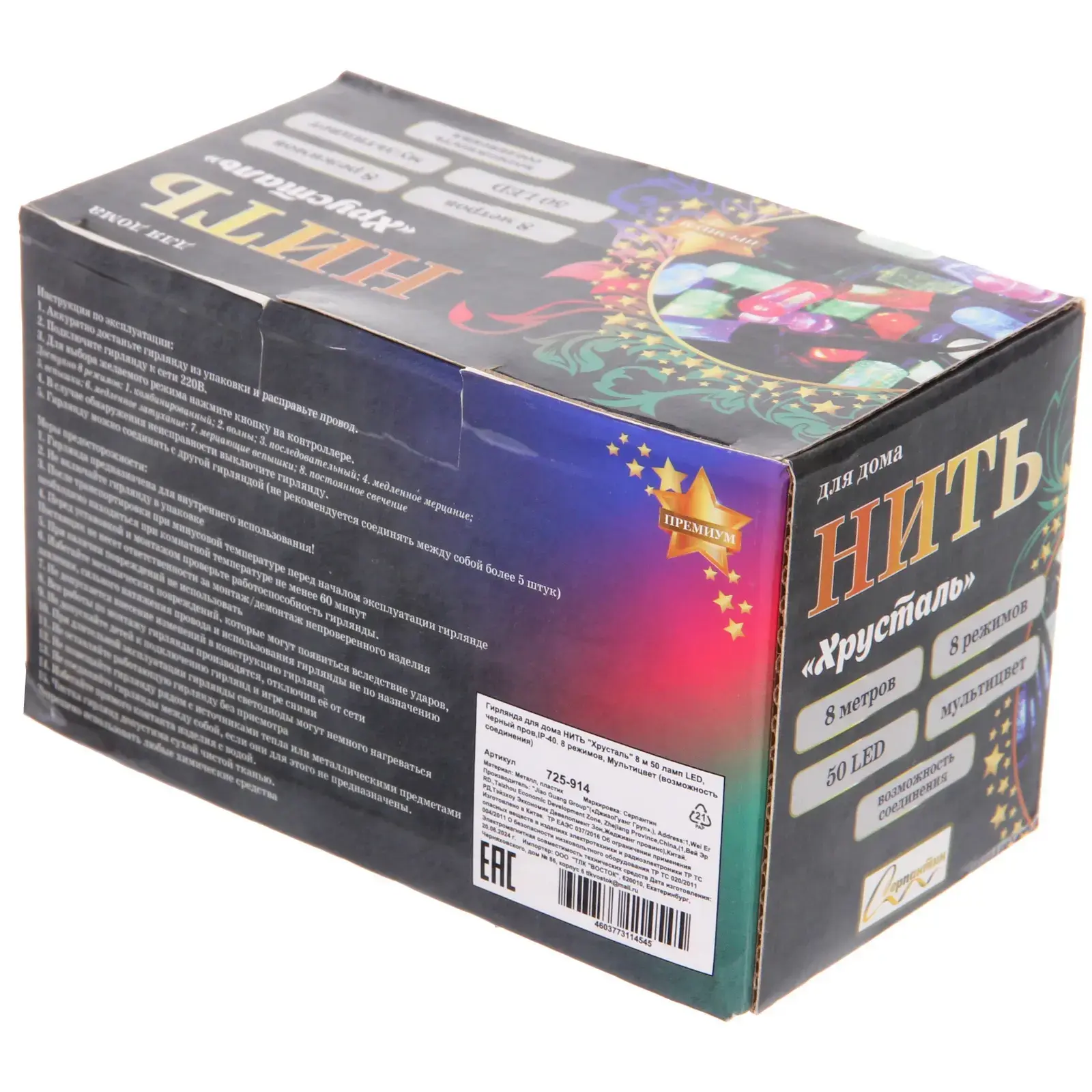 Создайте атмосферу уюта и праздника с гирляндой НИТЬ «Хрусталь». Эта гирлянда длиной 8 метров с 50 яркими светодиодами станет отличным дополнением к вашему интерьеру или украшением для праздников. Мультицветные огоньки и 8 режимов работы позволят вам настроить освещение под любое настроение и событие.
