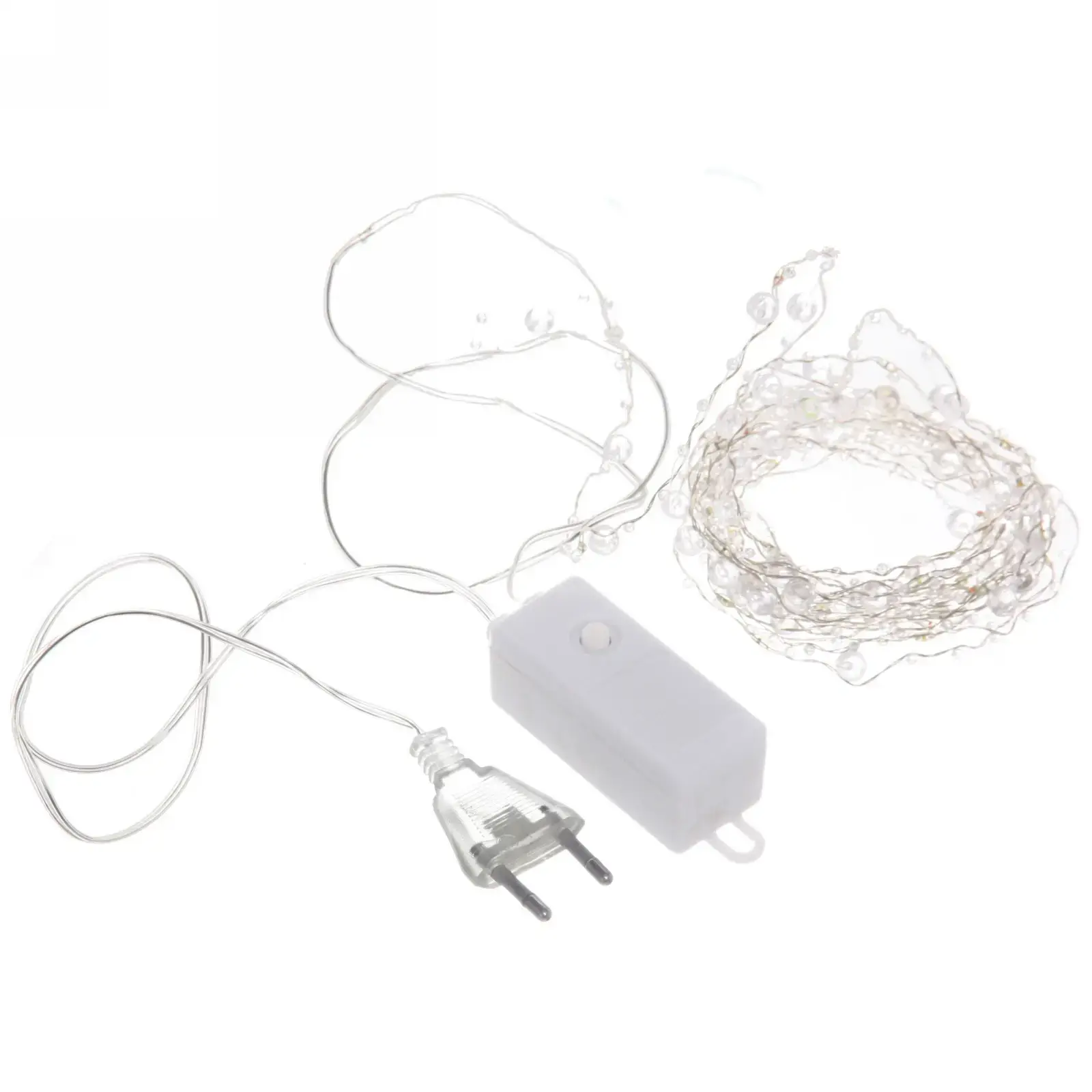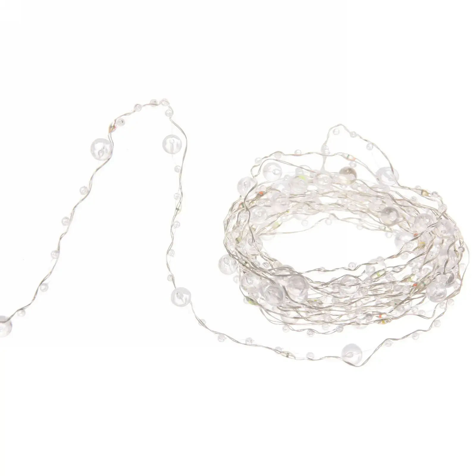 Гирлянда выполнена из качественных материалов, что обеспечивает ее долговечность и надежность. Прозрачные шарики, напоминающие кристаллы льда, создают эффект сверкающих бус, переливающихся огоньками. Она не только украсит ваш дом, но и станет стильным акцентом в любом пространстве.