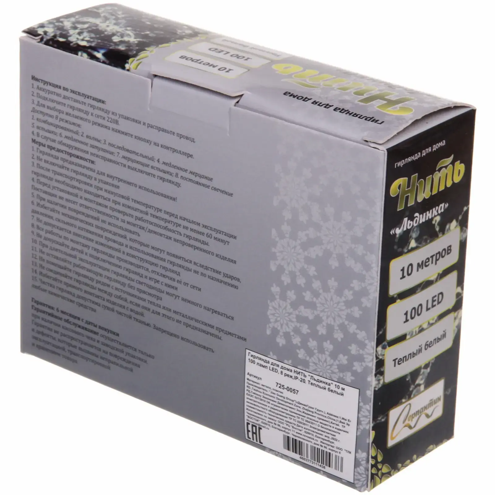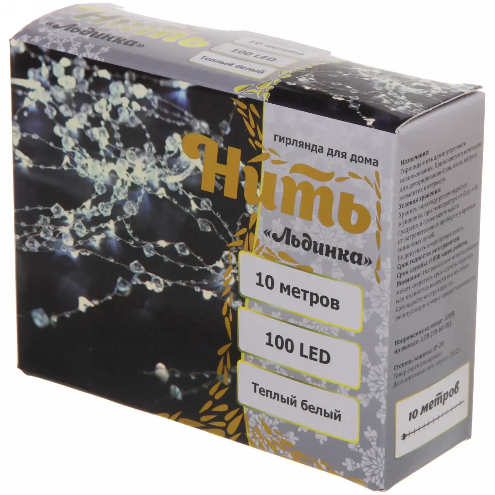 Гирлянда НИТЬ «Льдинка» длиной 10 метров с 100 светодиодами в теплых белых тонах станет идеальным украшением для вашего дома. Она добавит уют и элегантность в любой интерьер, создавая атмосферу зимней сказки. Благодаря 8 режимам свечения, вы сможете легко менять настроение в зависимости от вашего желания и повода.