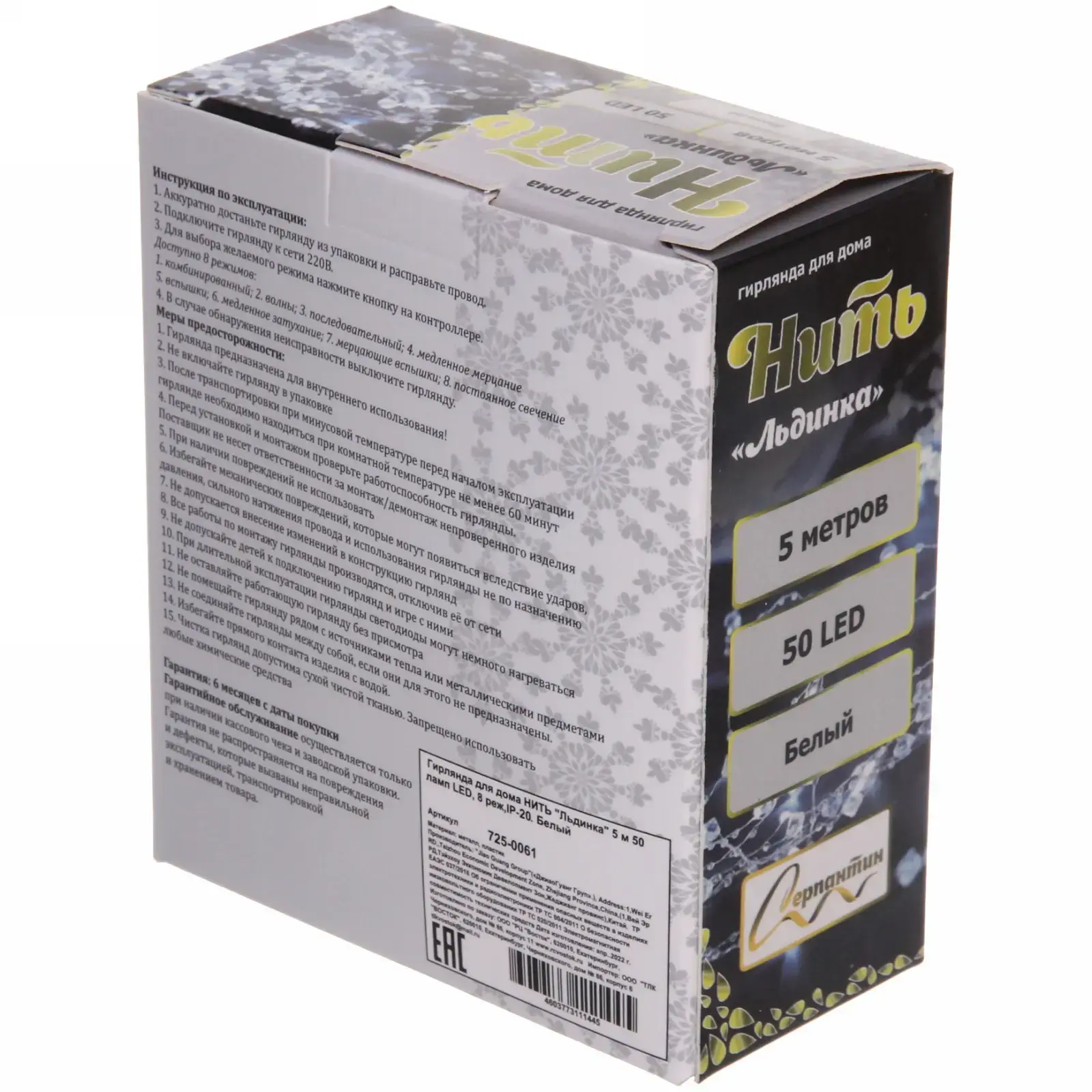 Важно: гирлянда предназначена только для внутреннего использования при температуре выше 0°C. Срок службы - до 8000 часов непрерывной работы.