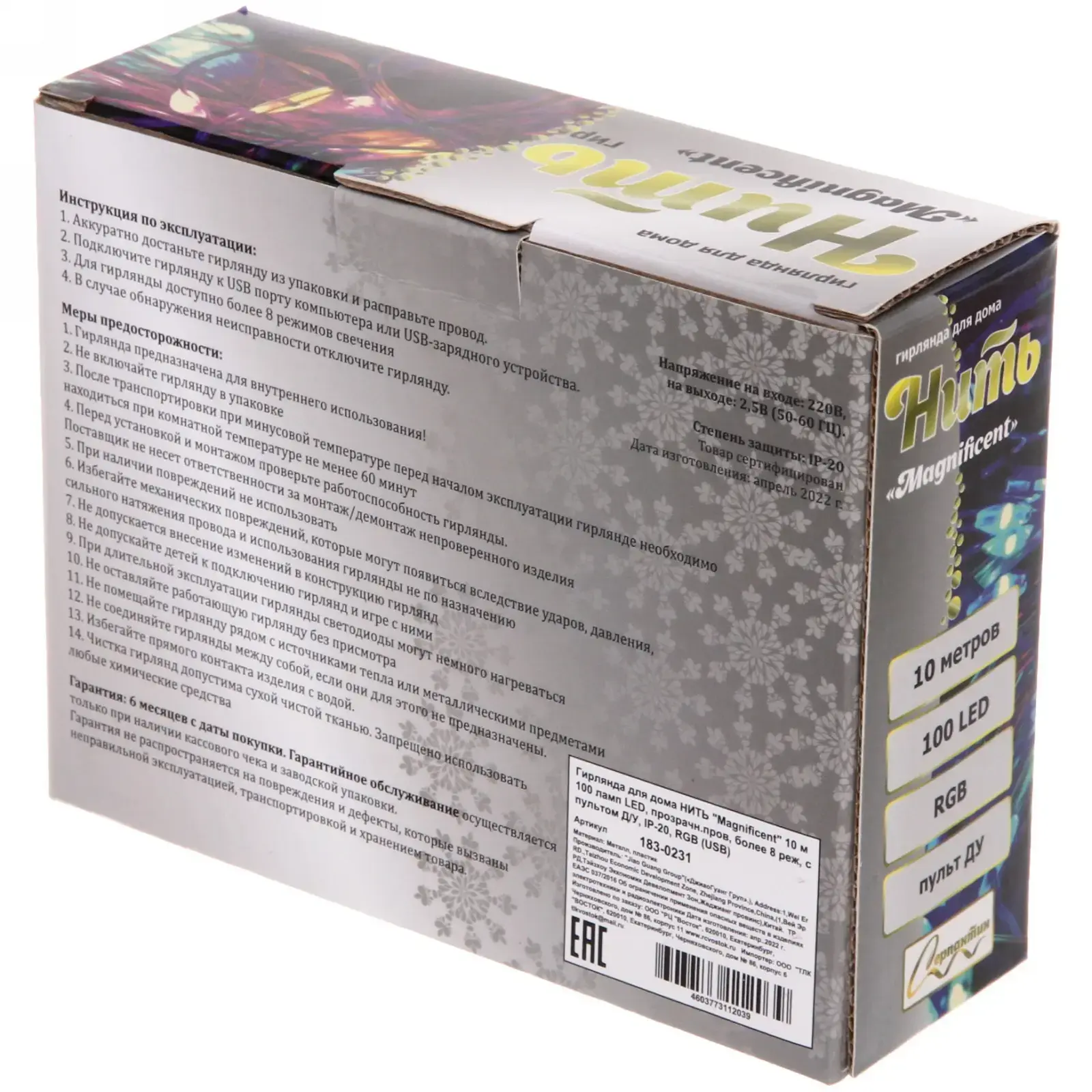 Гирлянда «Magnificent» с 100 разноцветными LED-лампами превратит ваш дом в сказочное пространство. Гибкий прозрачный провод и компактные лампы идеально подходят для декора интерьеров, новогодних елок, фасадов и мероприятий.