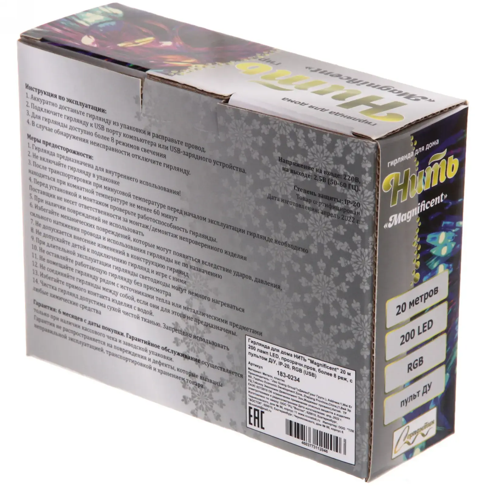 Эта гирлянда станет идеальным решением для украшения вашего дома, создавая уют и праздничное настроение. С длиной 20 метров и 200 яркими LED-лампами, она идеально подходит для оформления интерьеров, елок и фасадов зданий. Благодаря многоцветной RGB-подсветке, вы сможете легко менять атмосферу в зависимости от настроения и события.