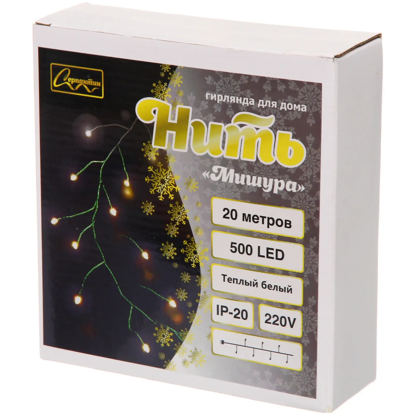 Гирлянда для дома НИТЬ «Мишура» 20 м 500 ламп LED, зеленый провод, мерцание, IP-20, 220v, Теплый белый