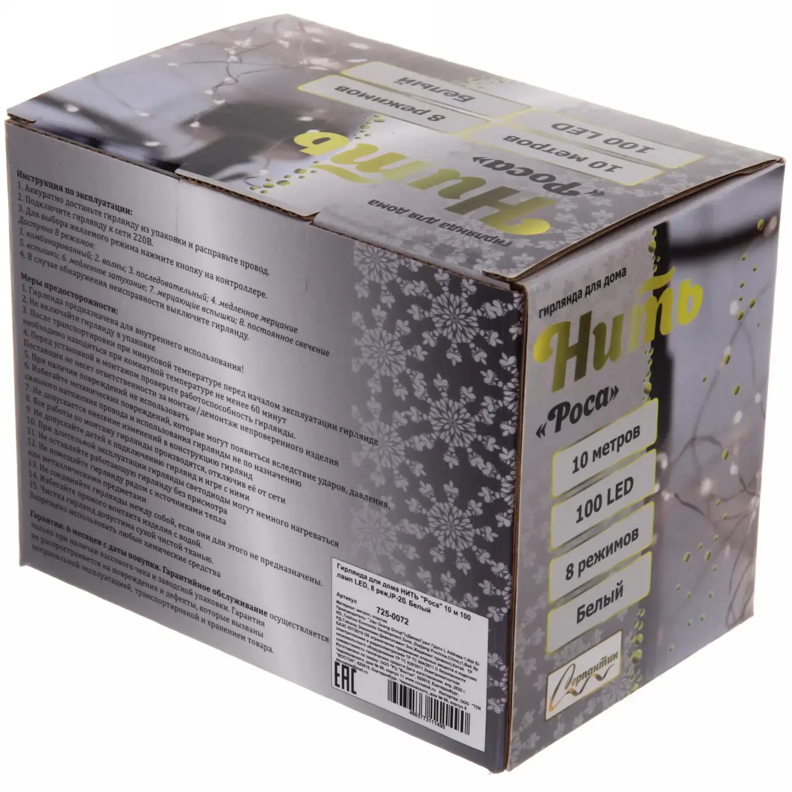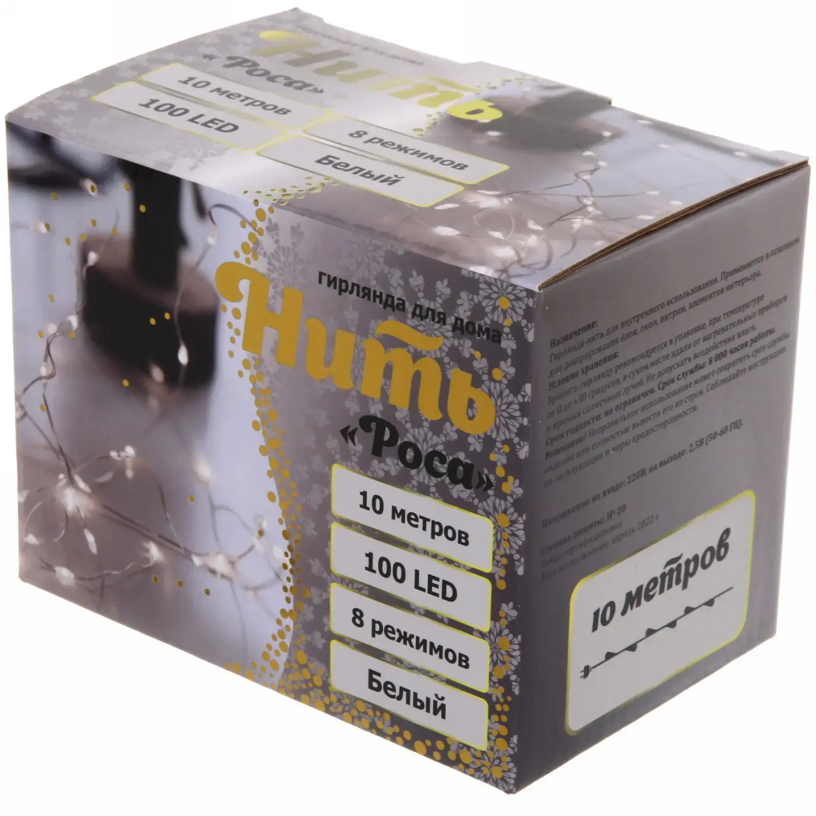 Создайте атмосферу уюта и праздника с гирляндой НИТЬ «Роса». Эта гирлянда длиной 10 метров с 100 яркими LED-лампами добавит волшебства в ваш интерьер, превращая любое пространство в сказку. Благодаря 8 режимам работы, вы сможете легко менять настроение освещения, подстраиваясь под любое событие — от романтического вечера до новогоднего праздника.
